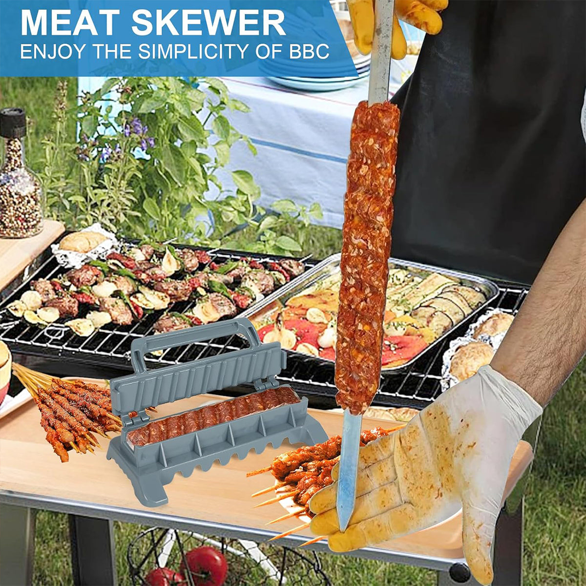 This foldable barbecue tool simplifies skewering for outdoor grills, picnics or camping. It works with fresh meat, vegetables, ham sausages and seafood, letting you make kebabs quickly without complex steps. Its compact foldable design also makes storage and carrying easy.