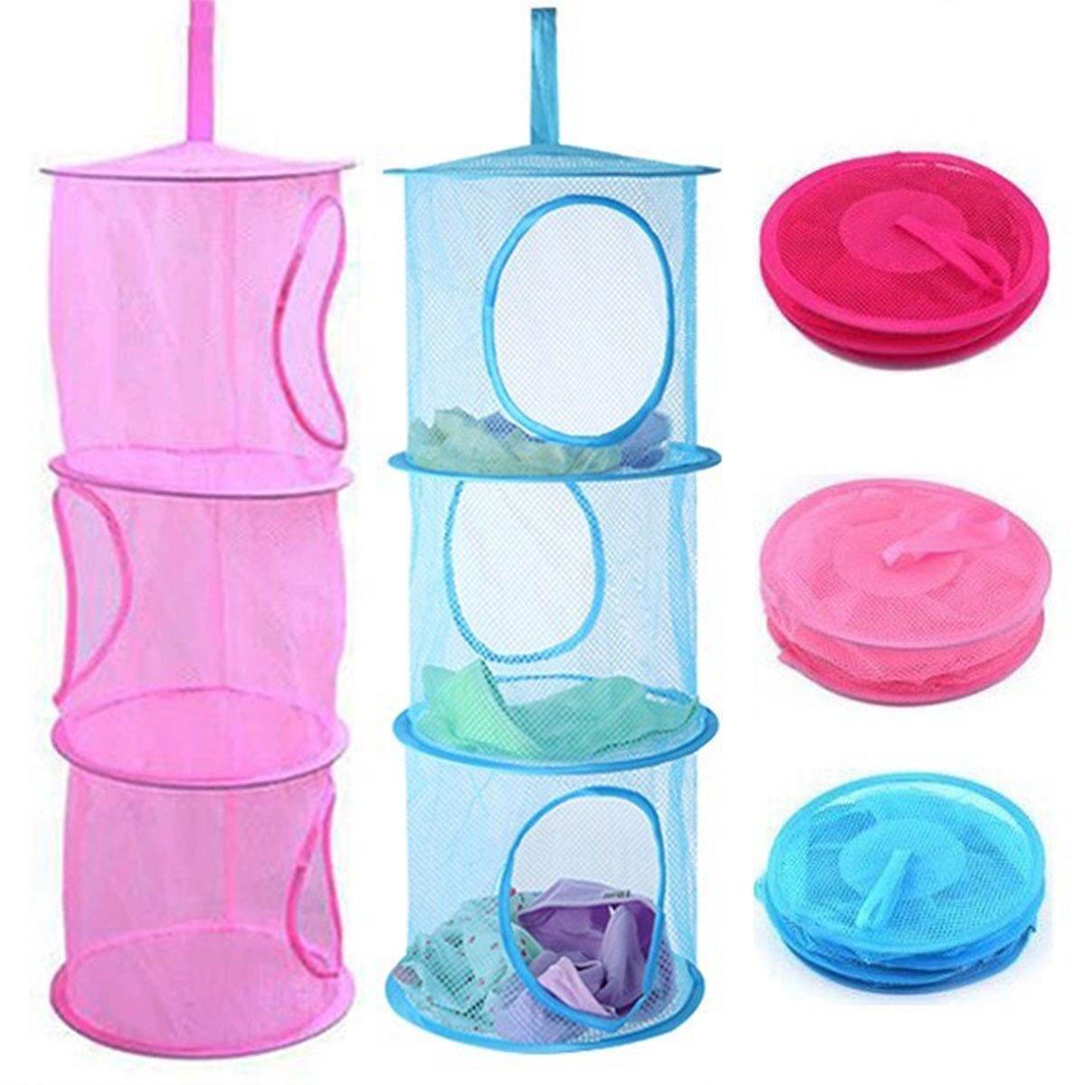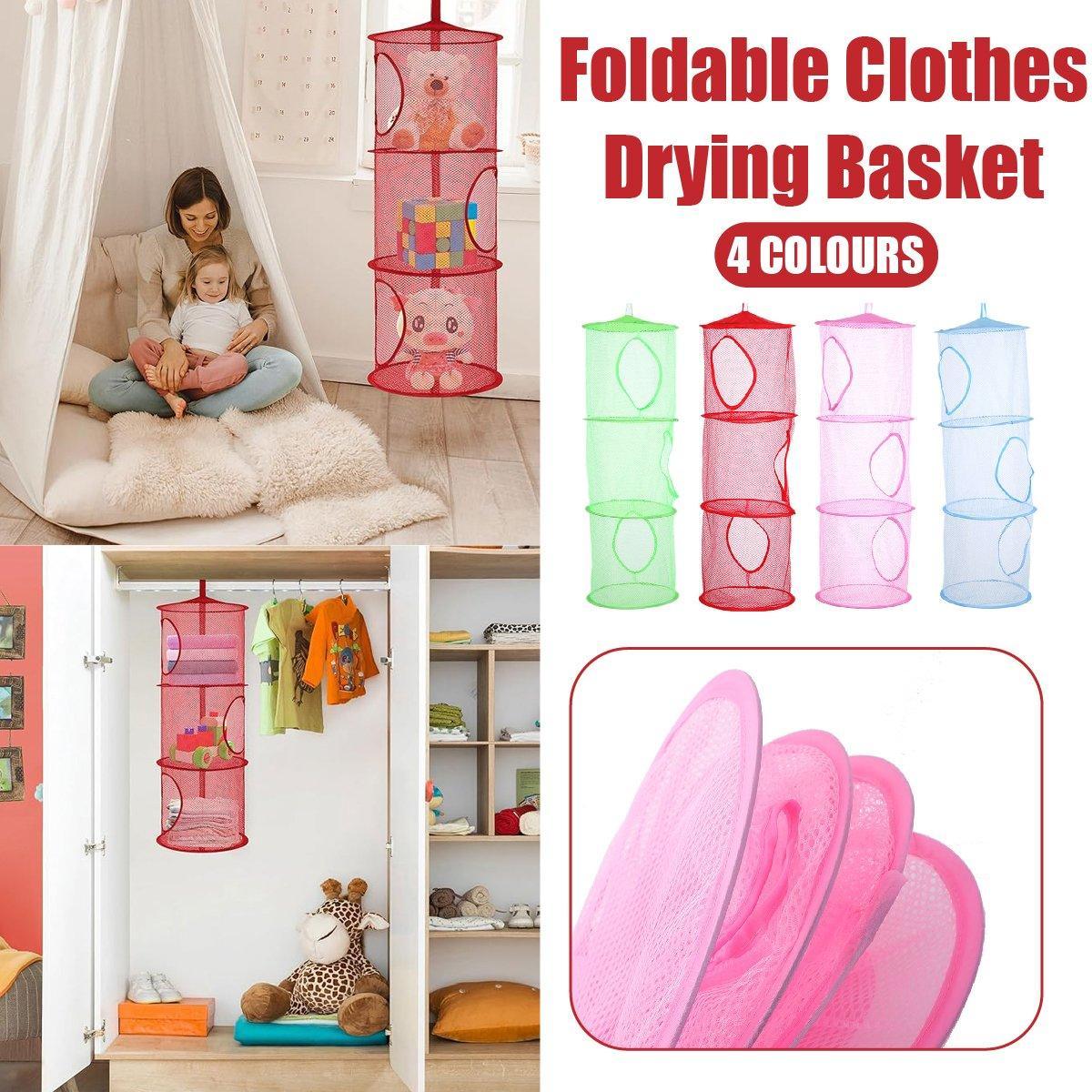 Foldable Clothes Drying Basket Three-layer Hanging Storage Breathable Organizer