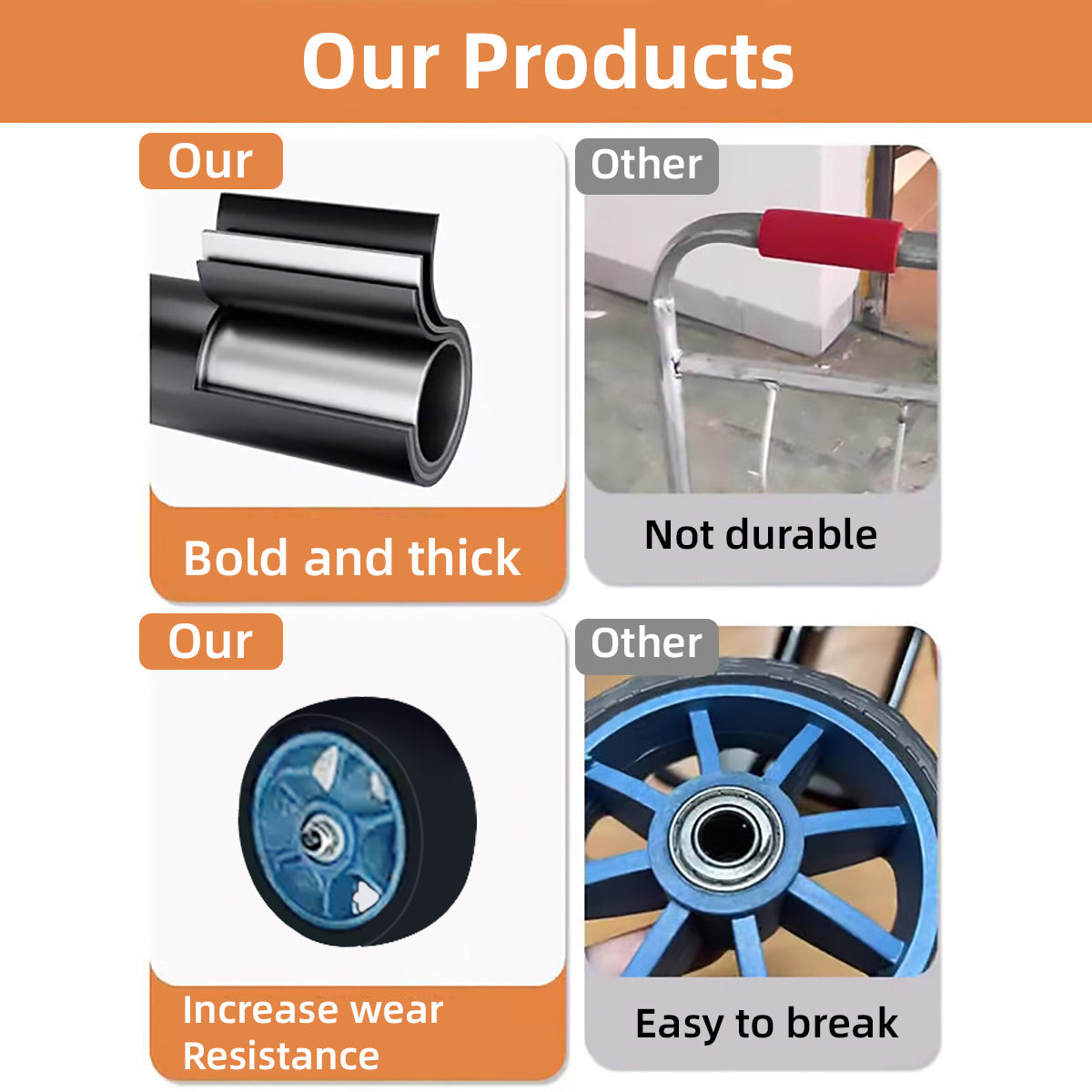 • This listing offers two models: Solid Rubber Wheel Cart for flat ground and daily use, and Stair Climbing Cart for stairs and uneven terrain. Please select according to your needs.