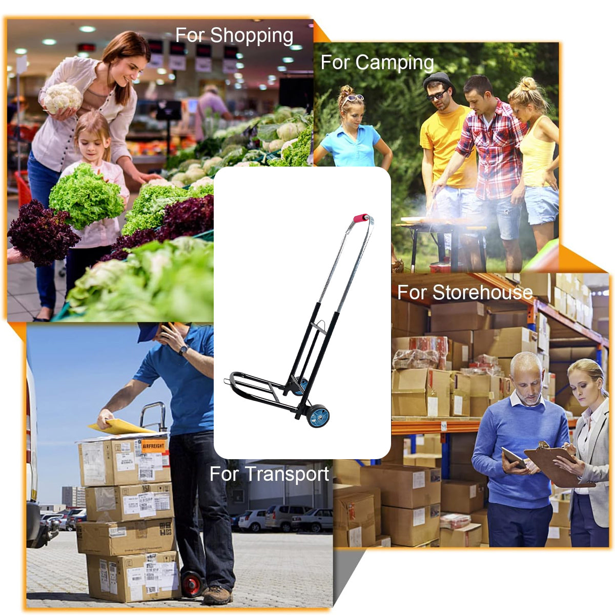 • Folding Hand Cart: Collapsible design saves space and is easy to store in your car trunk, closet, or office.