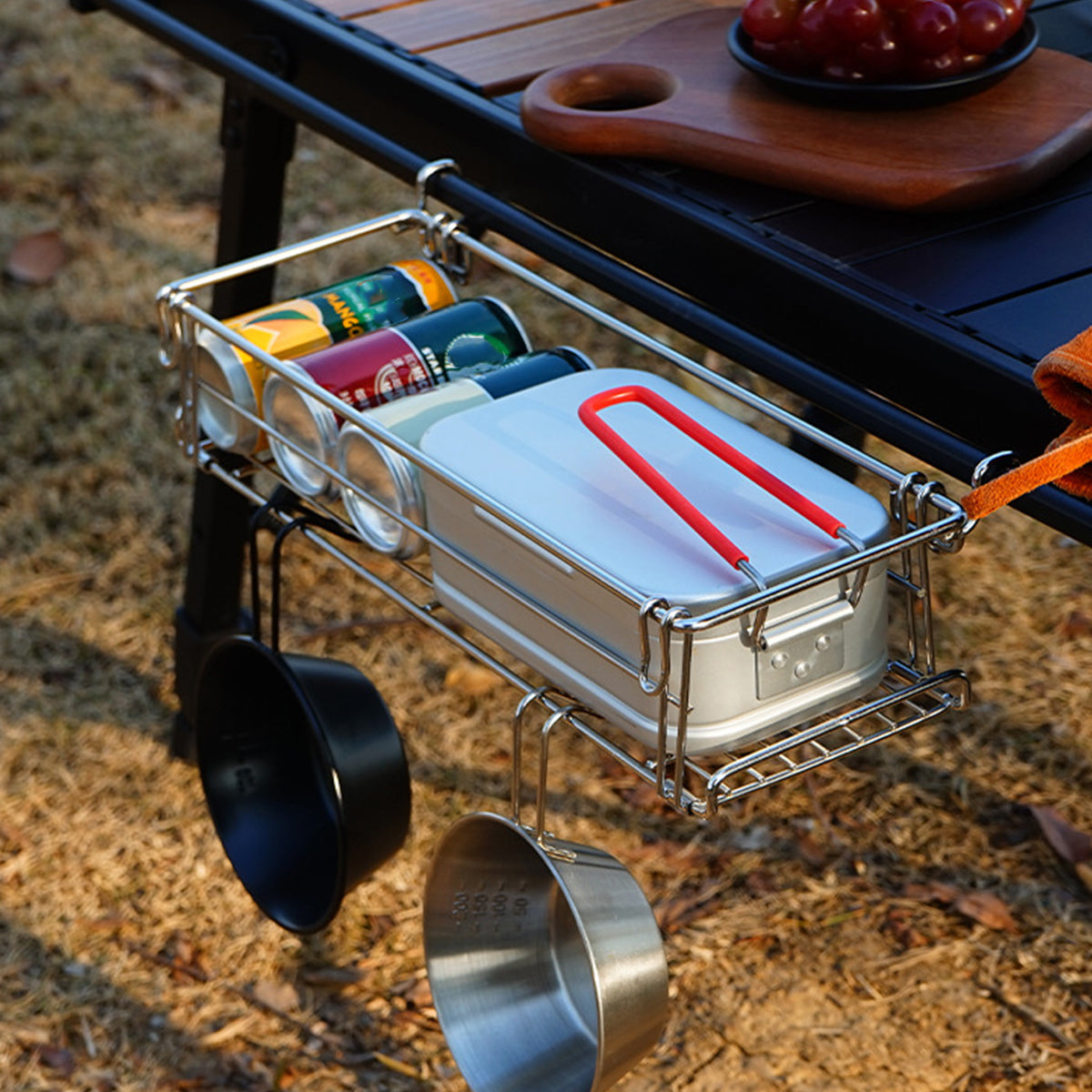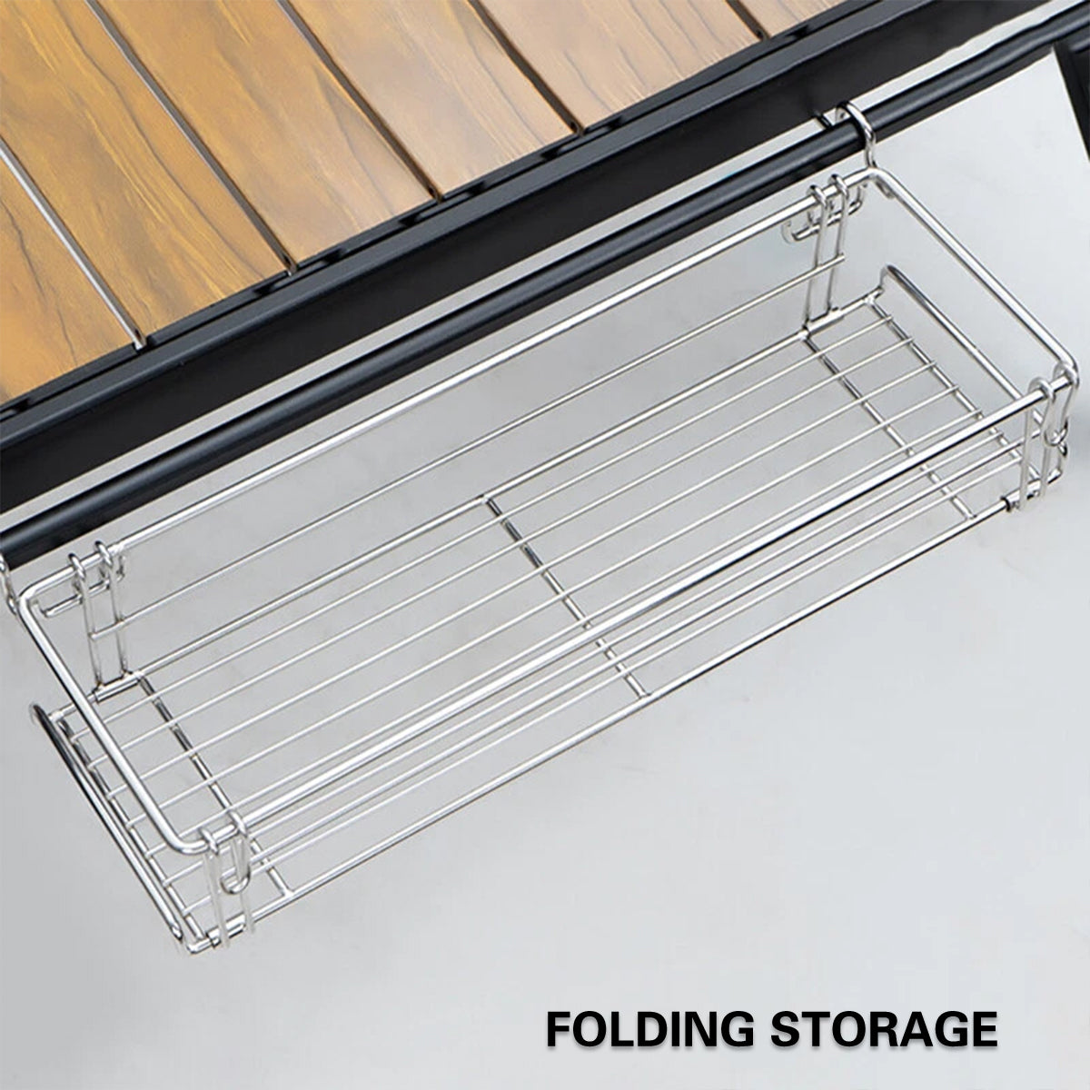 Folding Table Extension Rack Outdoor Camping Storage Shelf With Hanging Basket