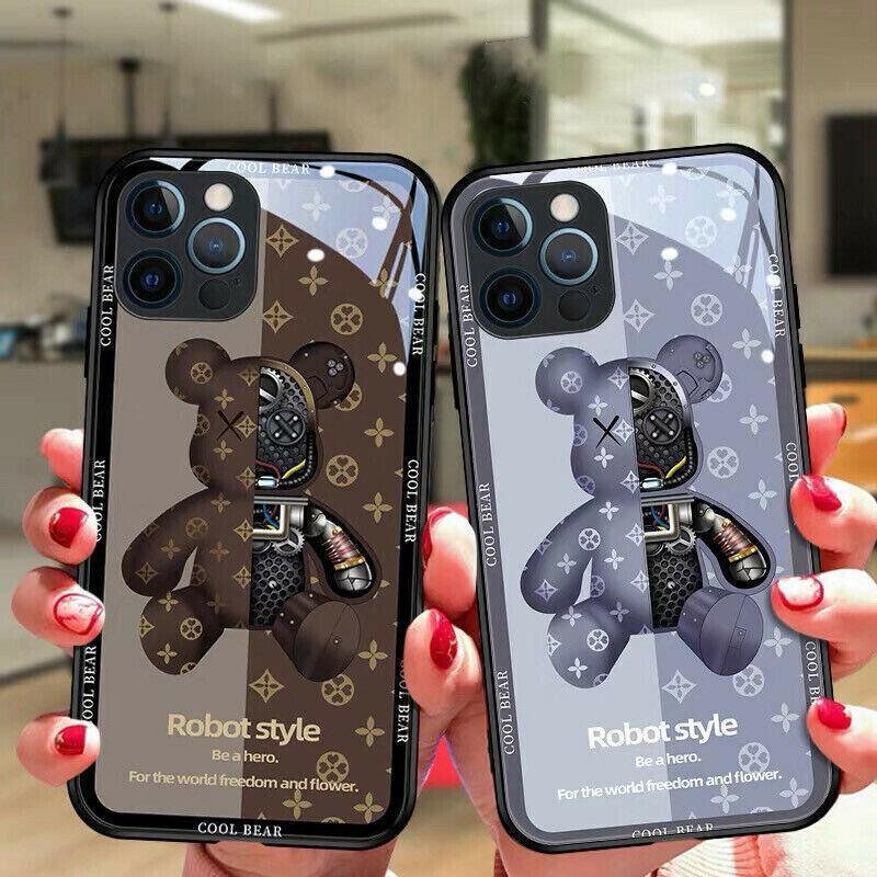For iPhone 13 Pro Max 12 11XS XR Luxury Cool Bear Shockproof Glass Case Purple