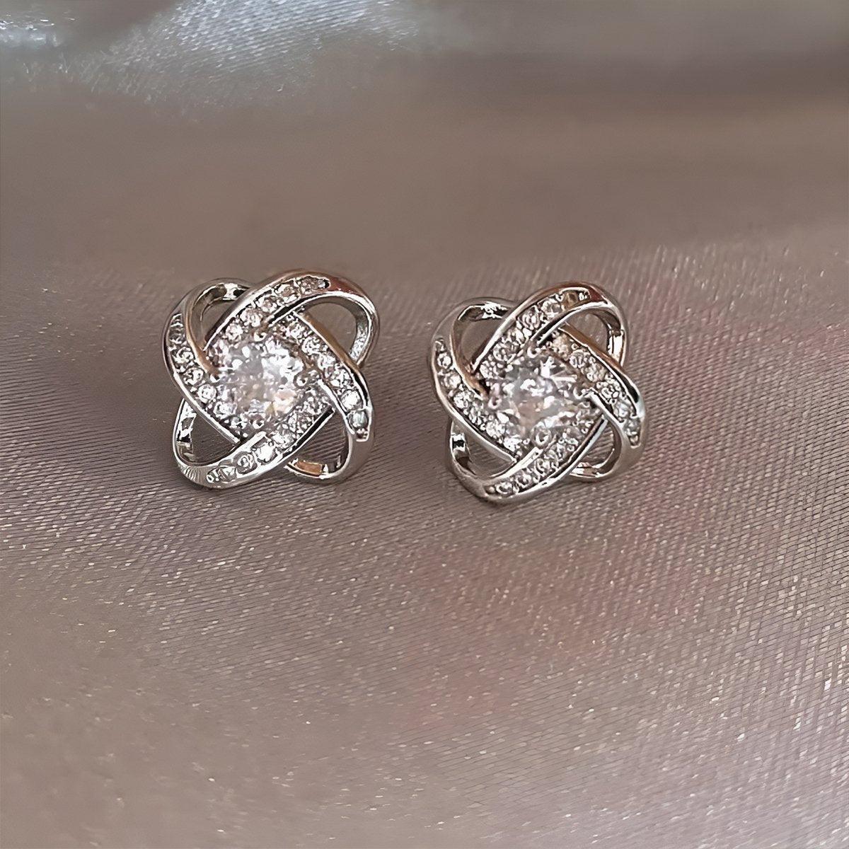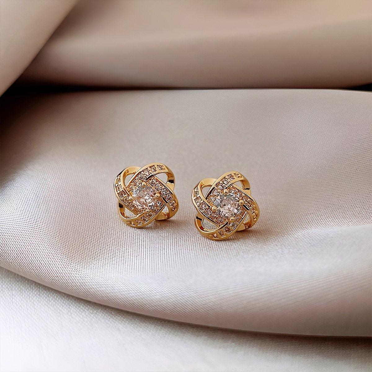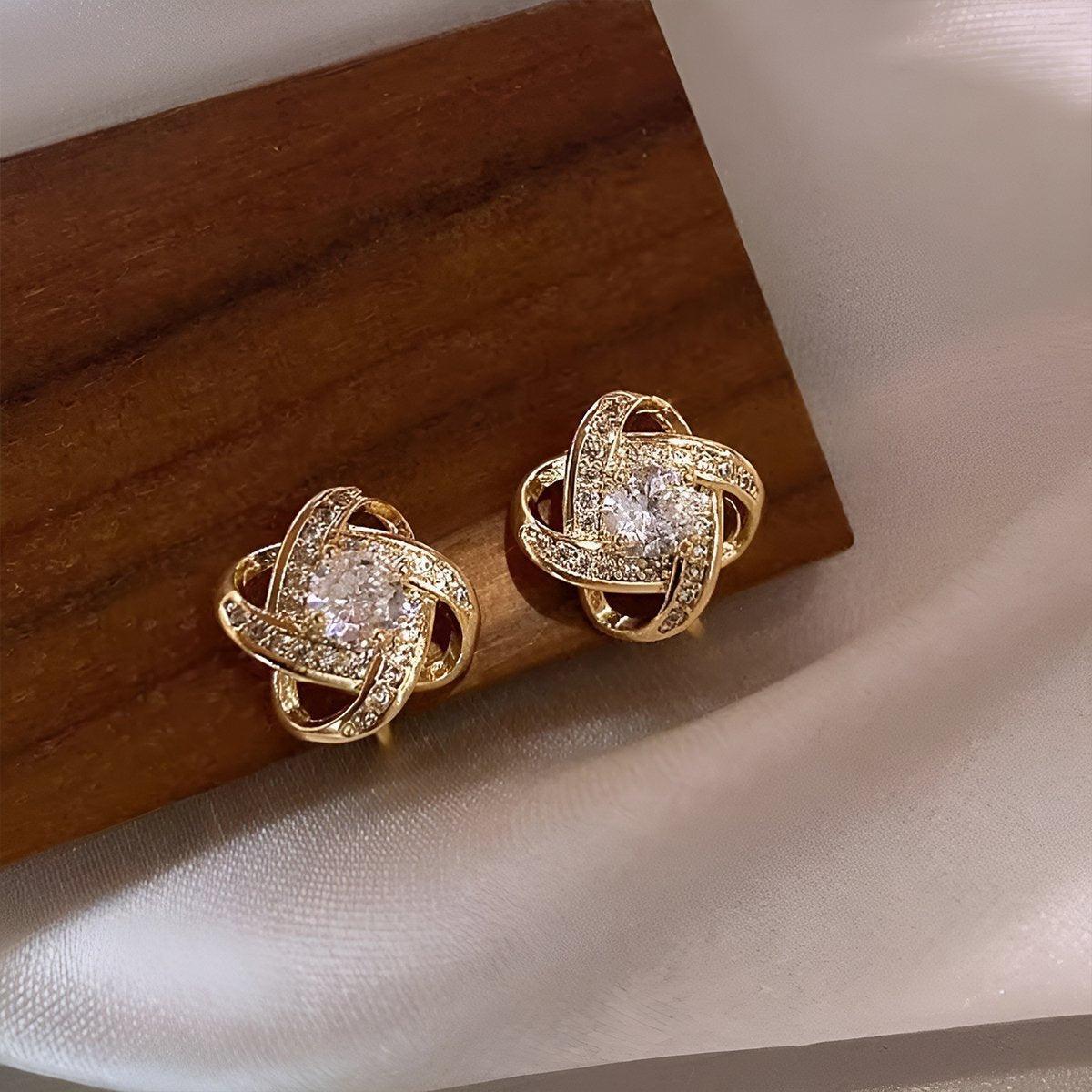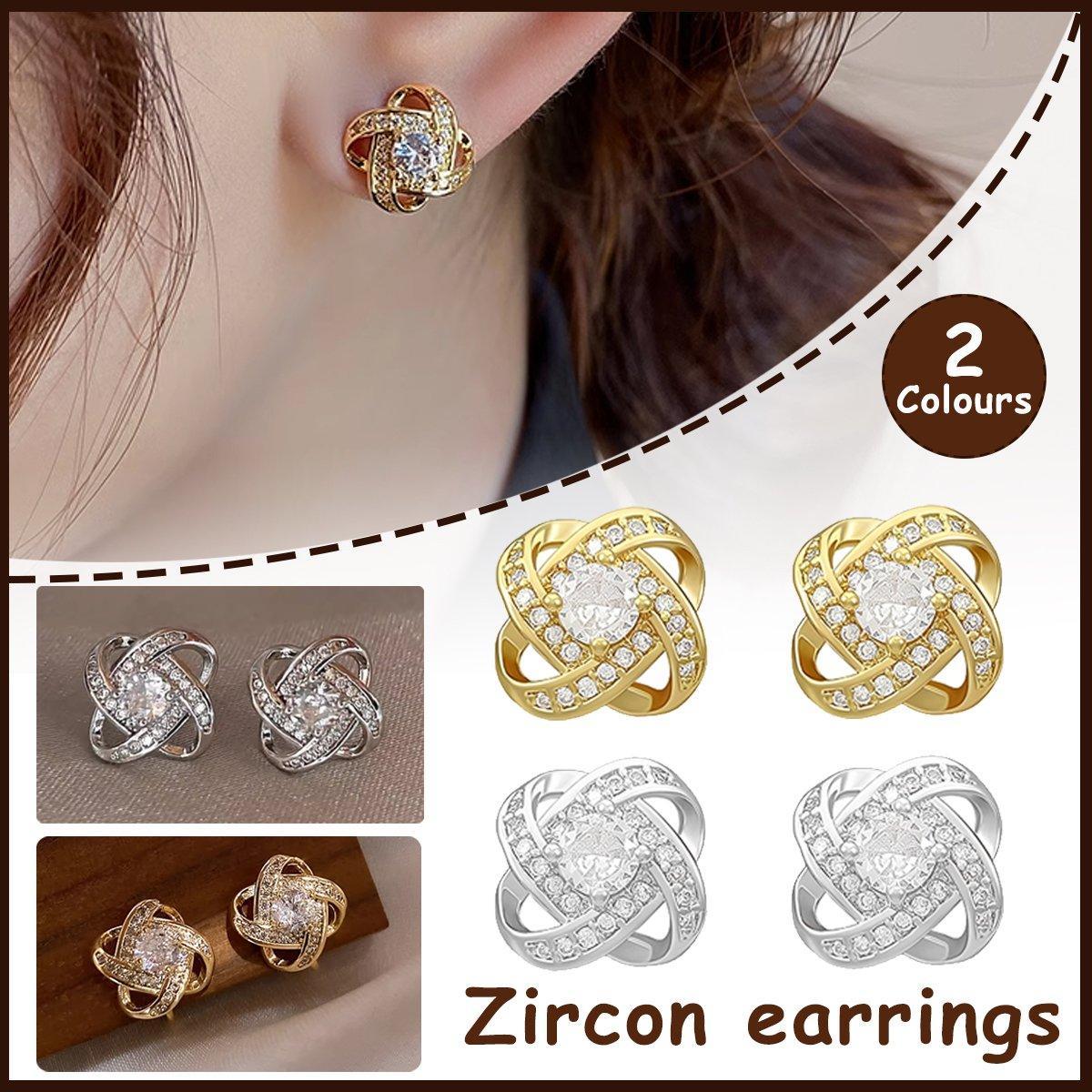 Four Leaf Clover Zircon Stud Earrings Gift For Women Wedding Fashion Jewelry