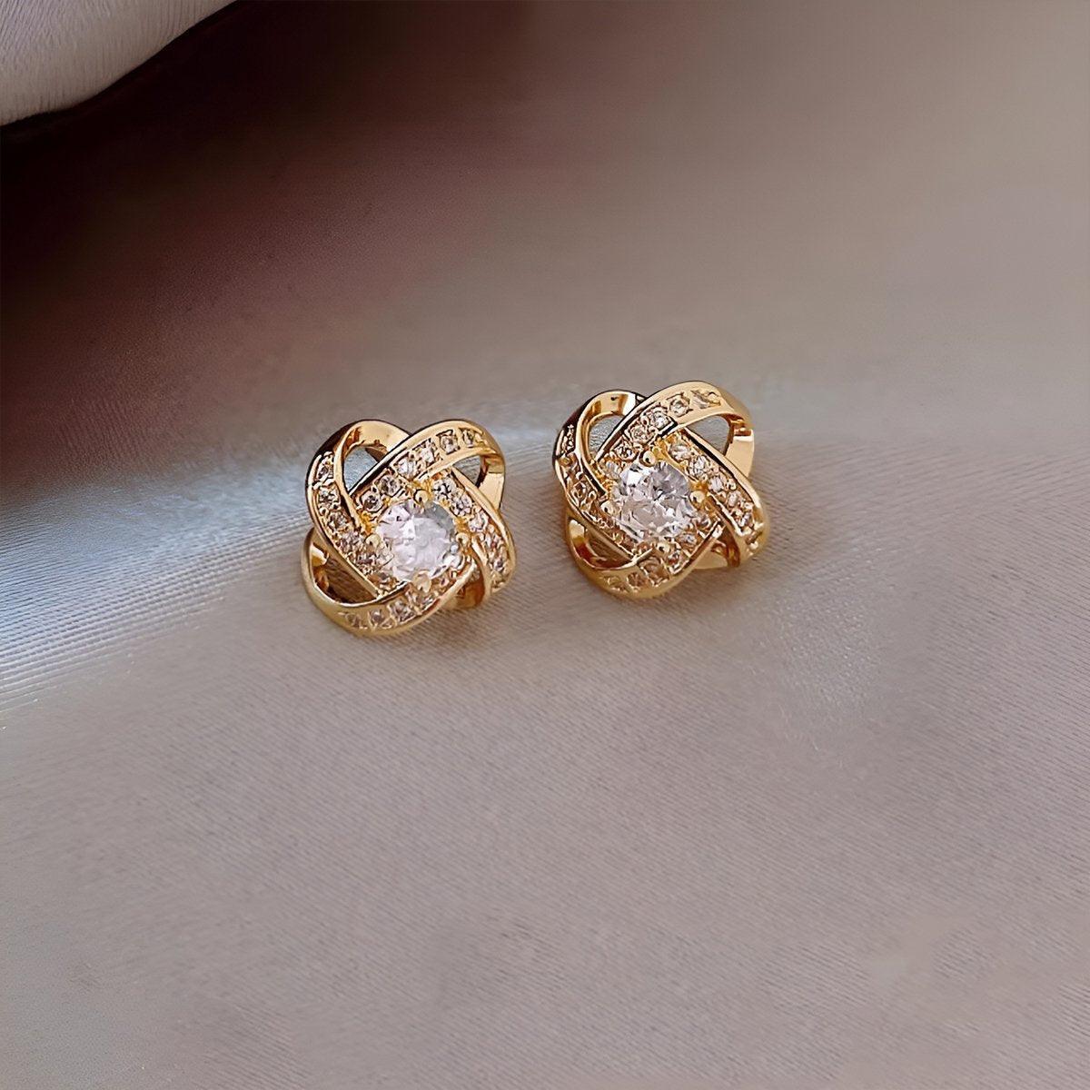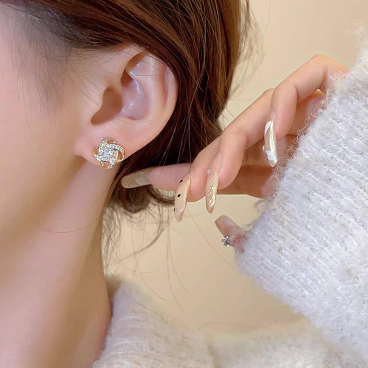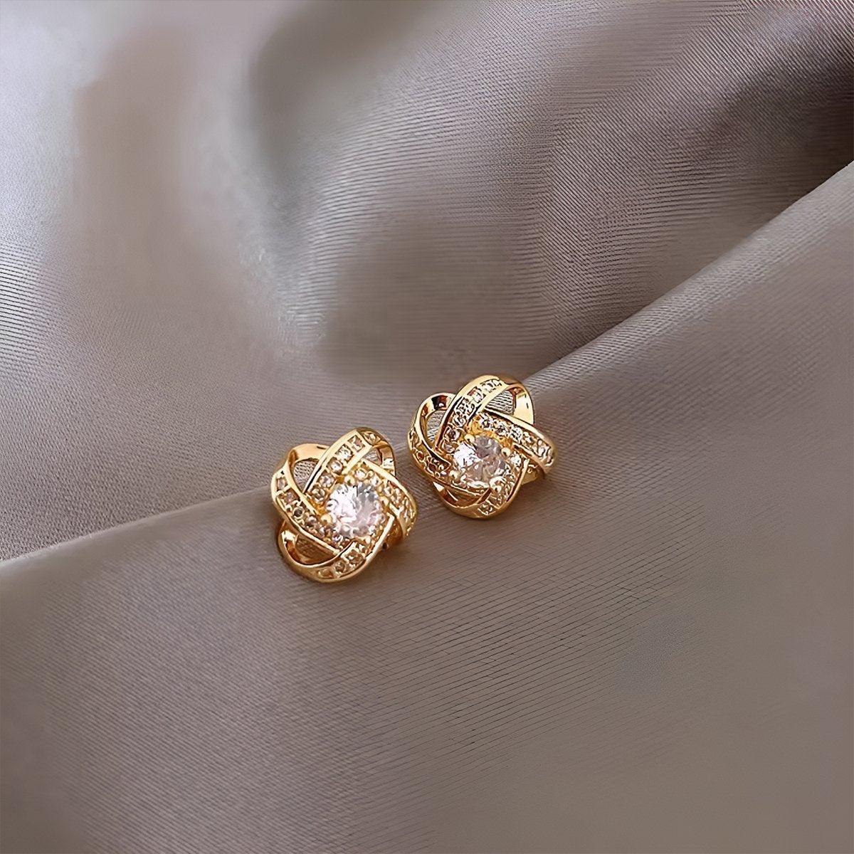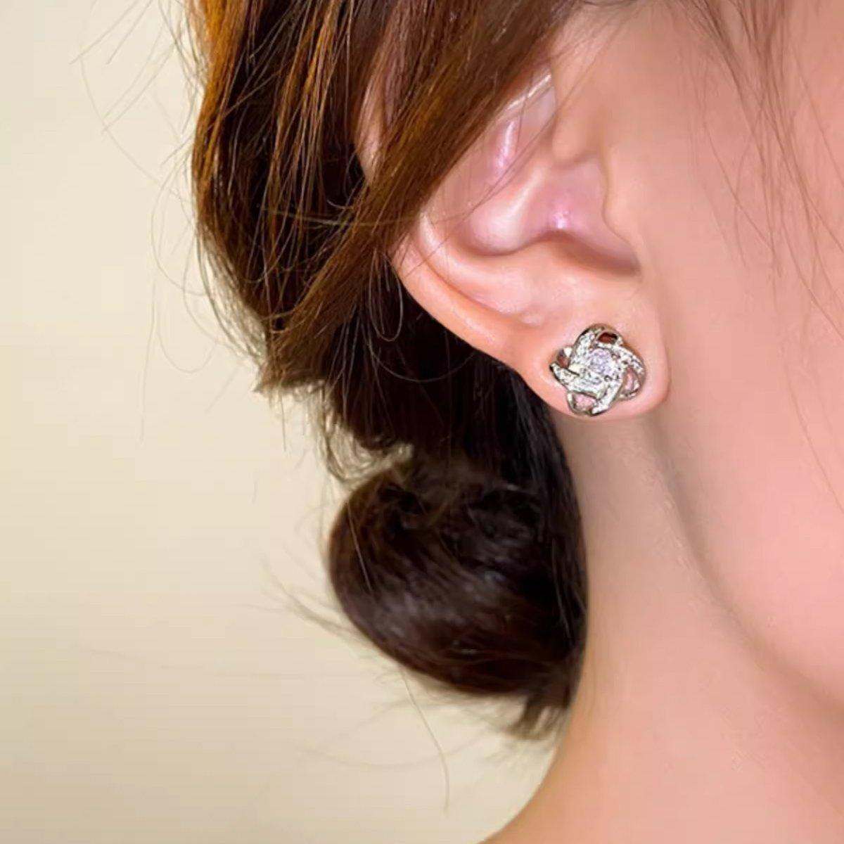 Four Leaf Clover Zircon Stud Earrings Gift For Women Wedding Fashion Jewelry