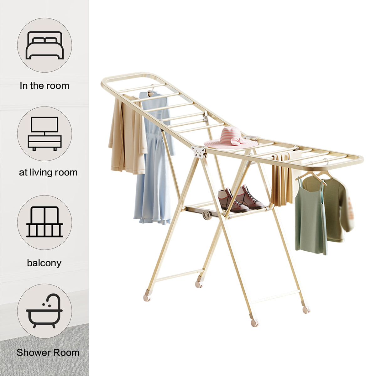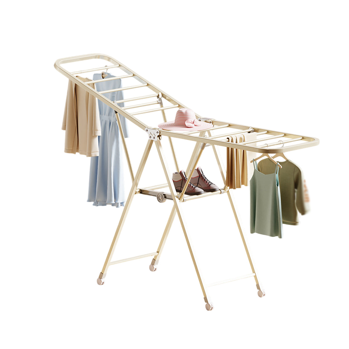 Freestanding Foldable Clothes Airer with Wheels Portable Drying Rack
