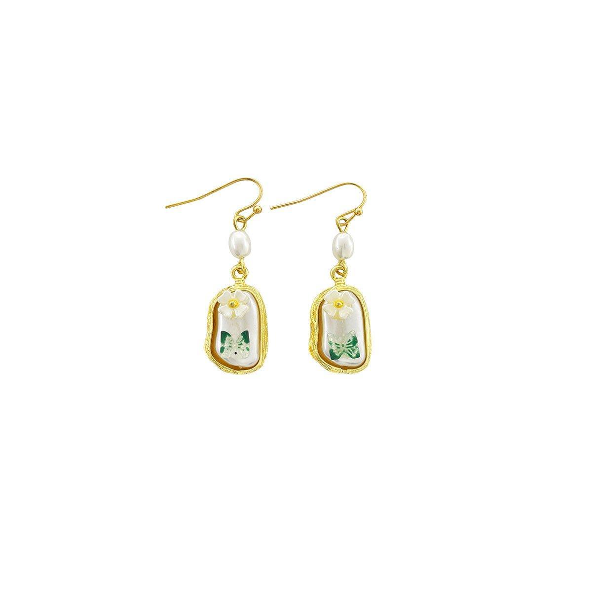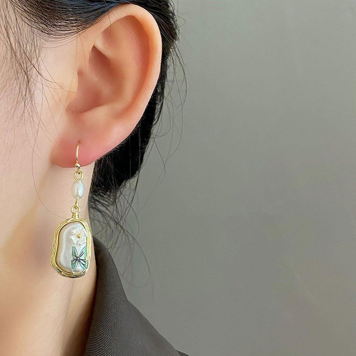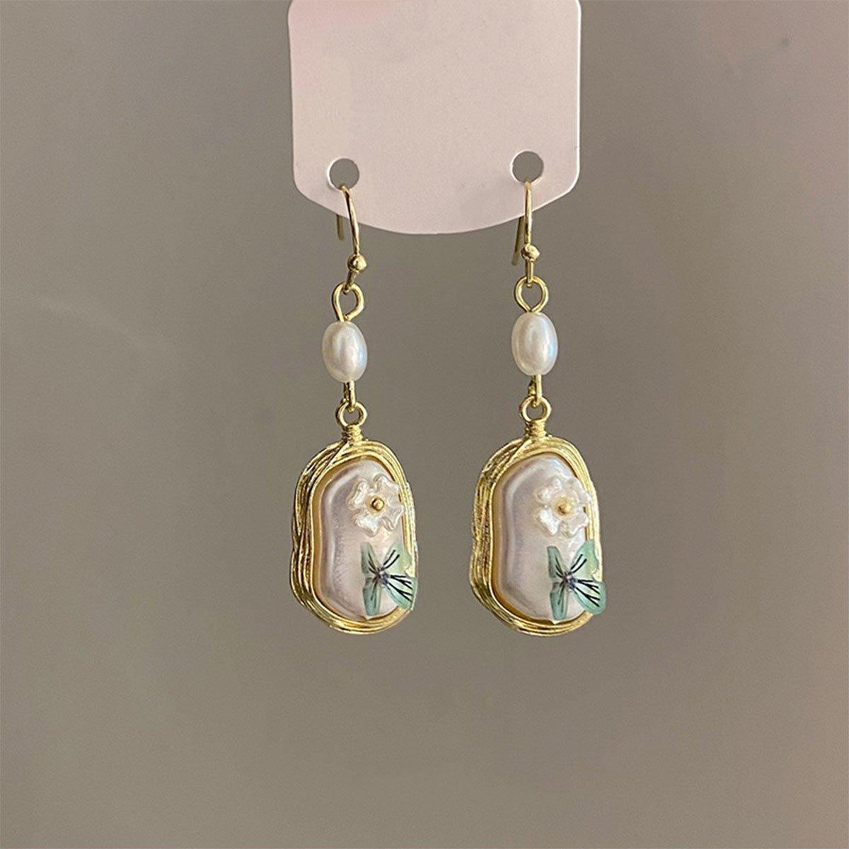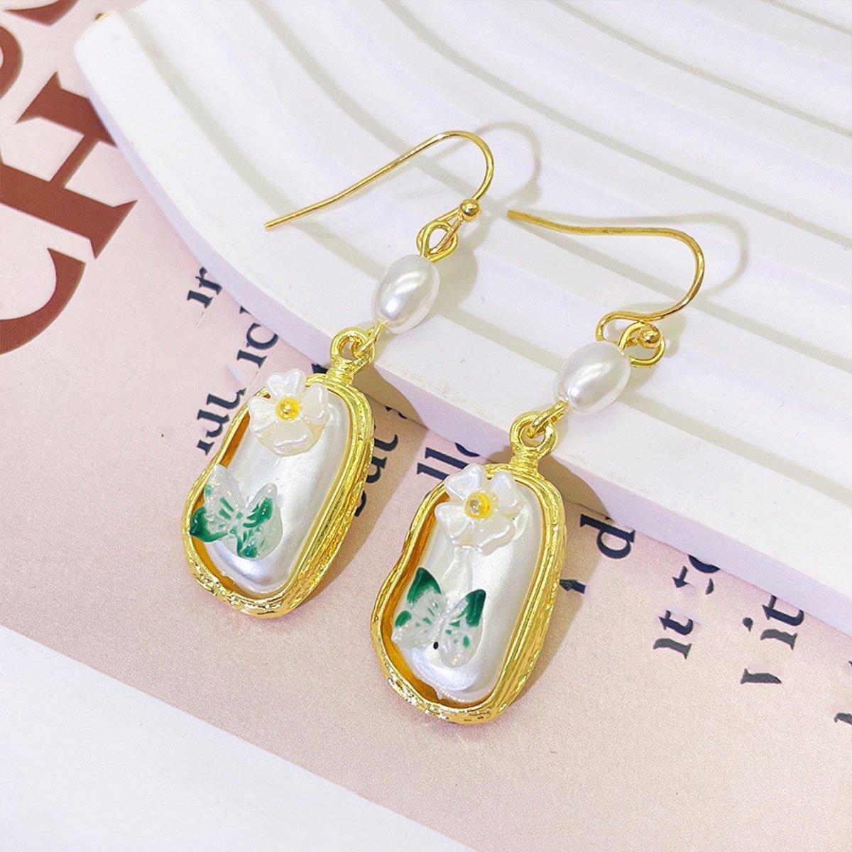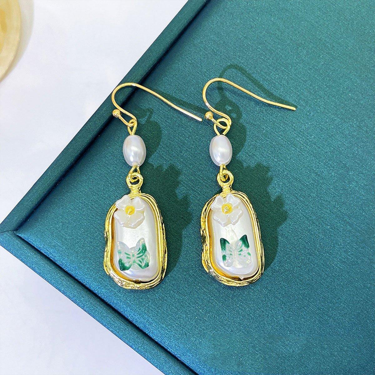 French Vintage Butterfly Flower Baroque Pearl Earrings Elegant High-end Design