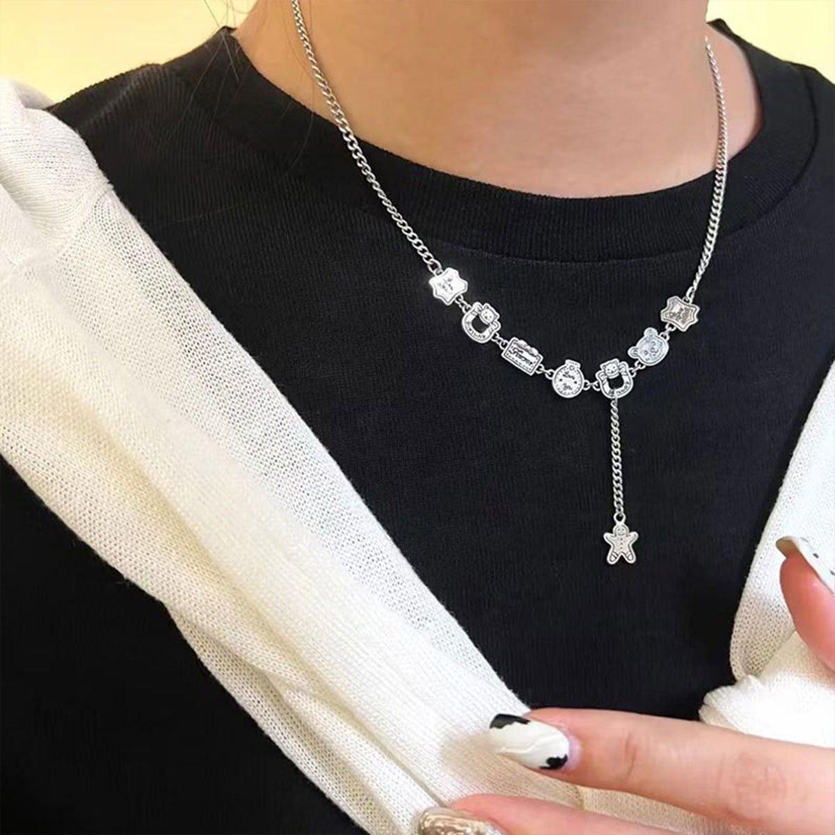 Gingerbread Man Tassel Necklace Womens Sweater Chain Fashion Jewelry Gift