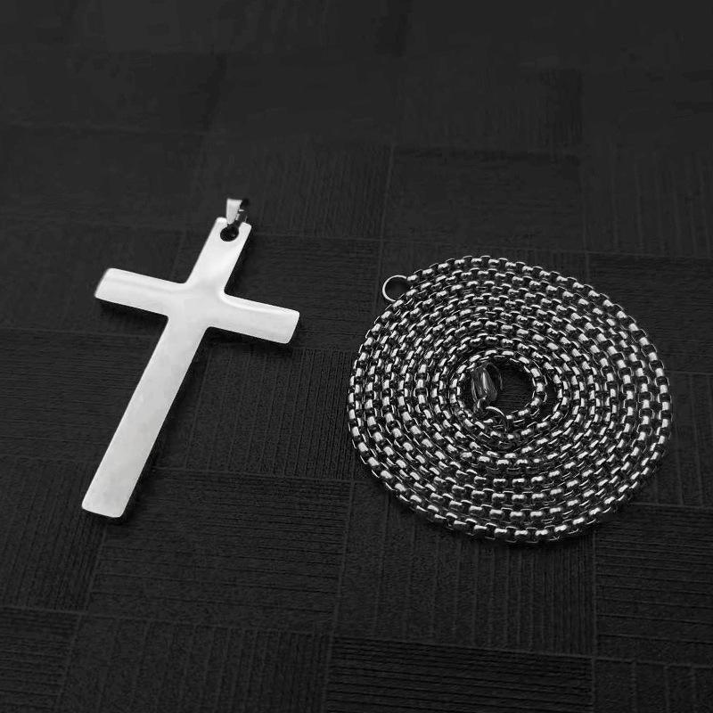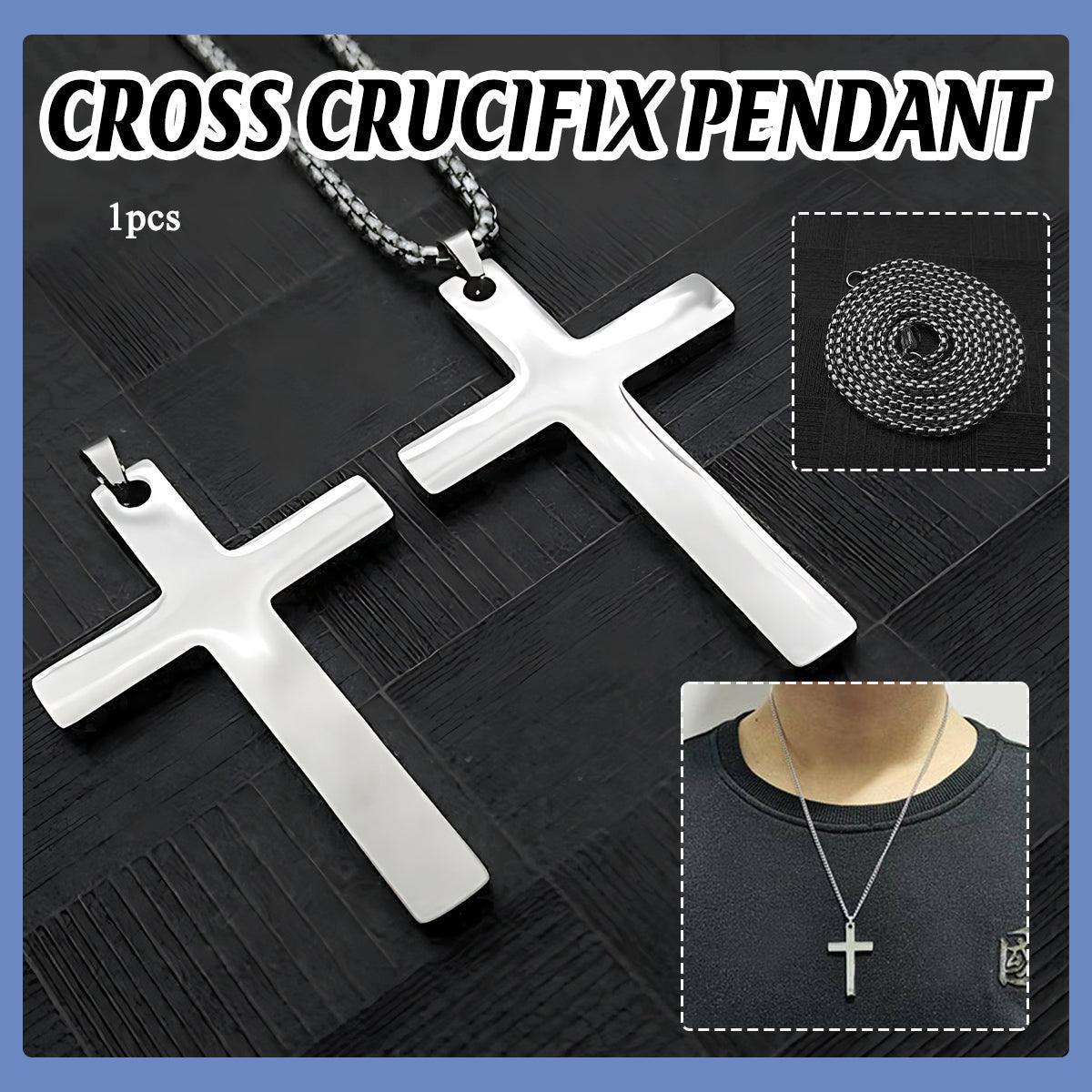 Gold-Plated Stainless Steel Men's Cross Fashion Pendant Necklace with Long Chain