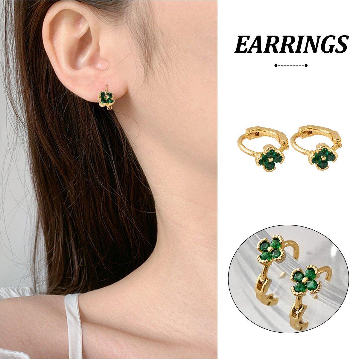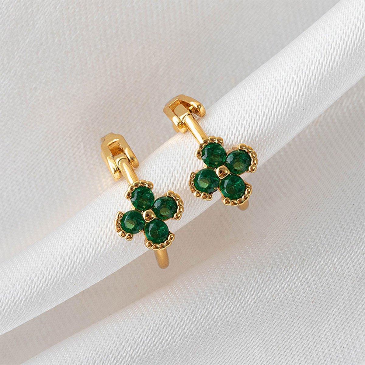 Green Lucky Grass Ear Cuff Simple Earrings for Girls Fashion Jewelry Accessories