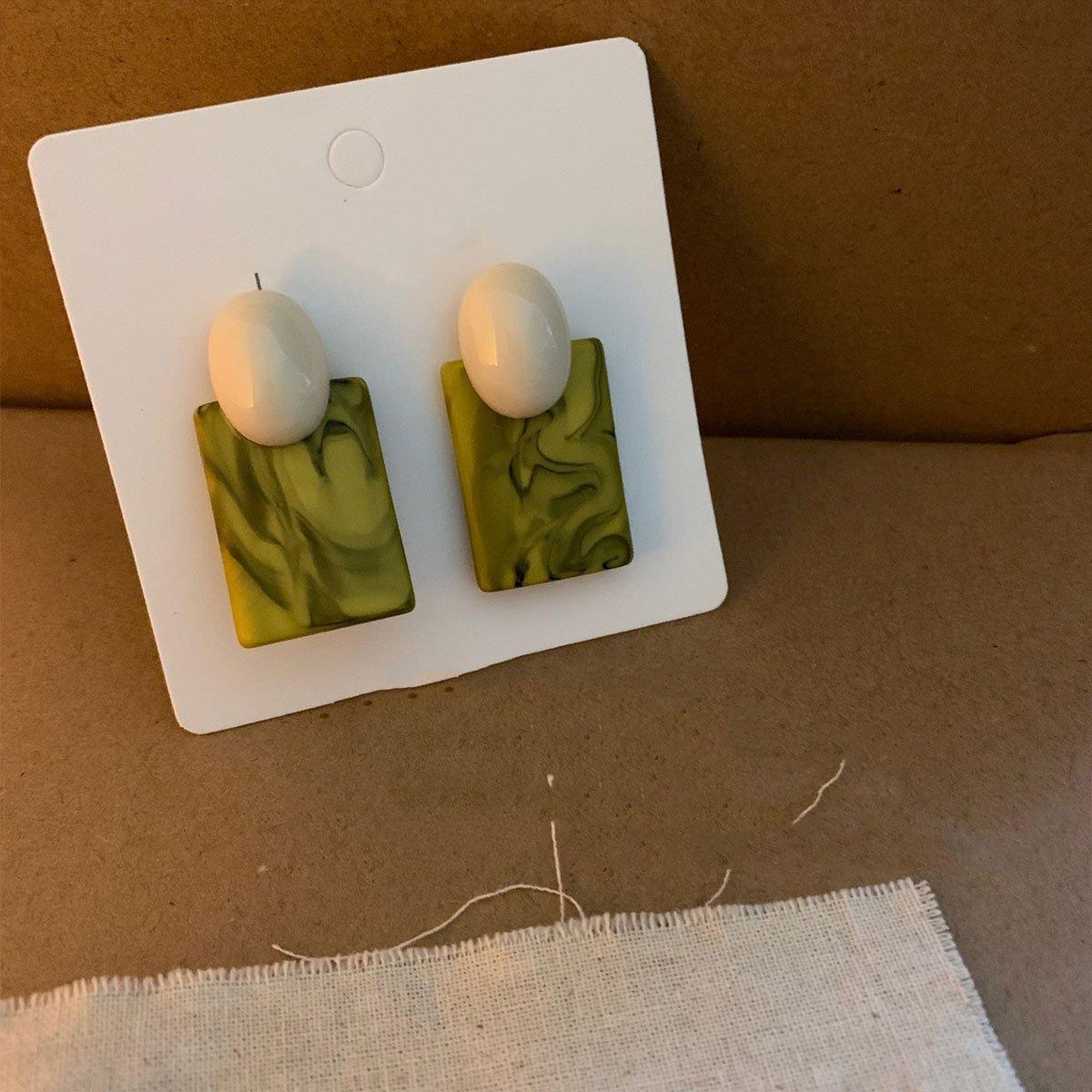 Green Square Vintage Earrings Retro Style Jewellery Women Girls Fashion Gift