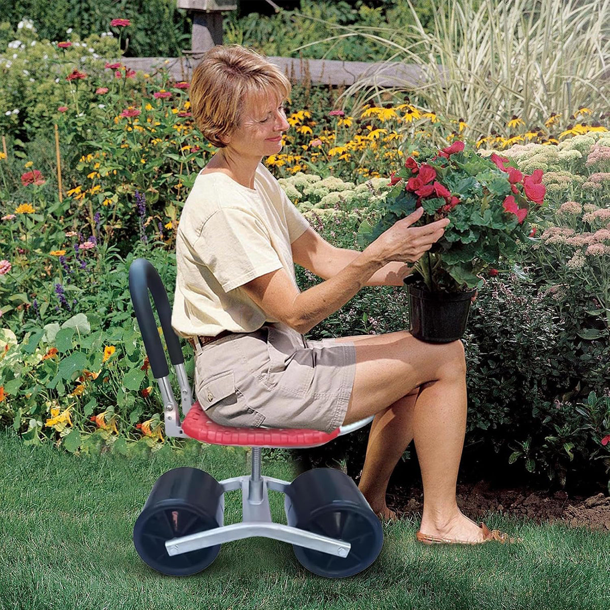 Greenhouse Garden Mobile Wheeled Stool Sturdy Durable Non Slip Seat Easy to Move