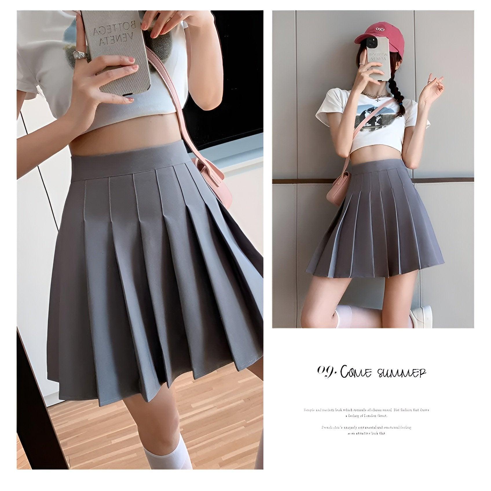 Grey Women High Waist Pleated Tennis Skirt Summer Slimming