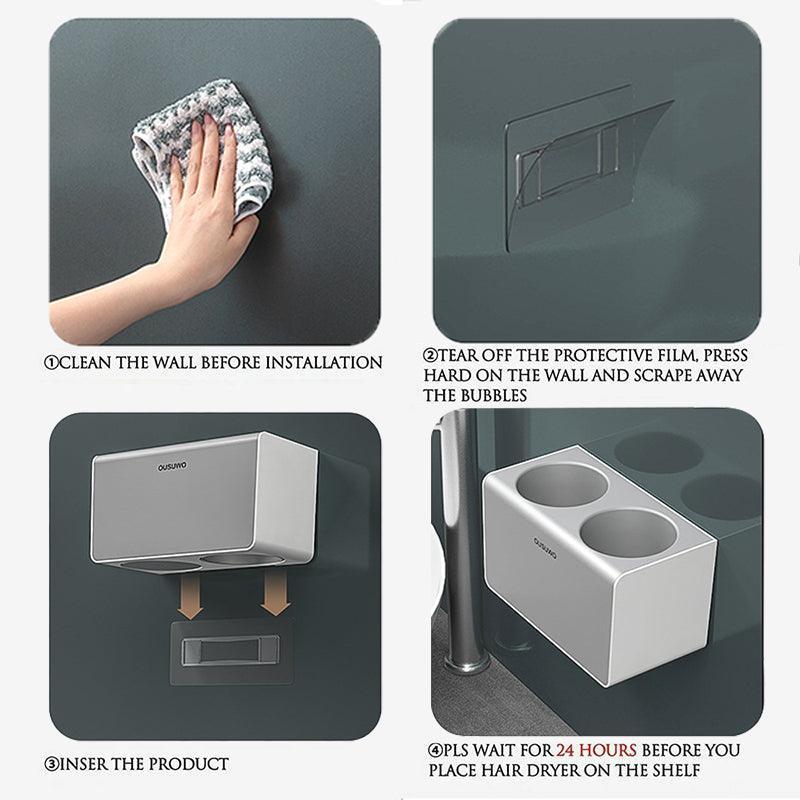 Hair Dryer Holder Storage Rack Curling Shelf Cup Bathroom Organizer Adhesive Au