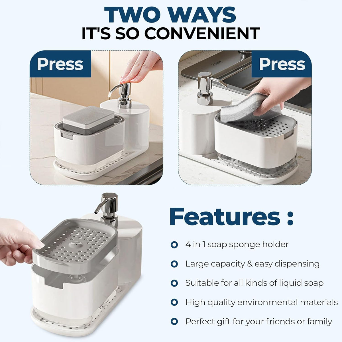 Hand Soap Liquid Press Dispenser Leak Proof For Kitchen Bathroom Easy Refill