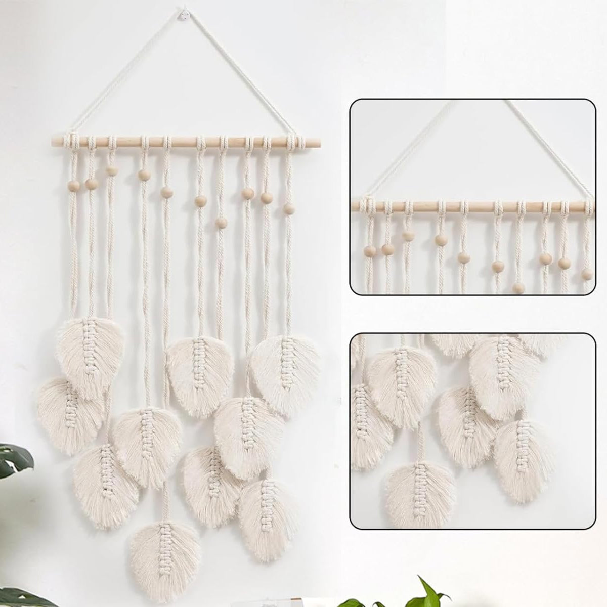 Hand Woven Cotton Cord Leaf Tapestry Bohemian Decorative Wall Hanging Home Art