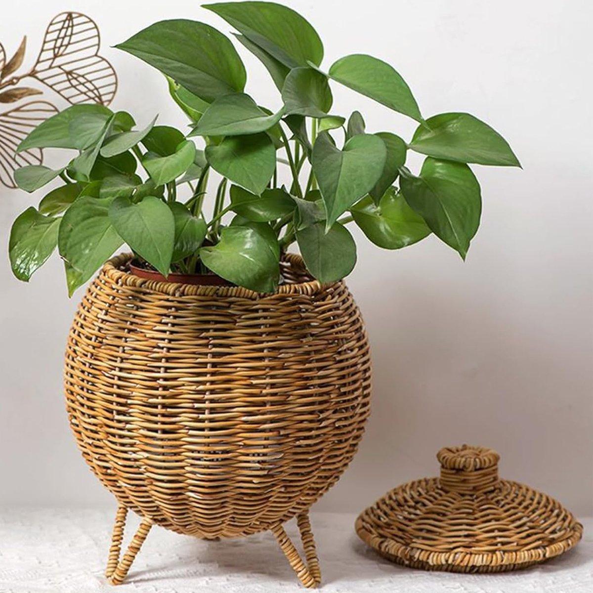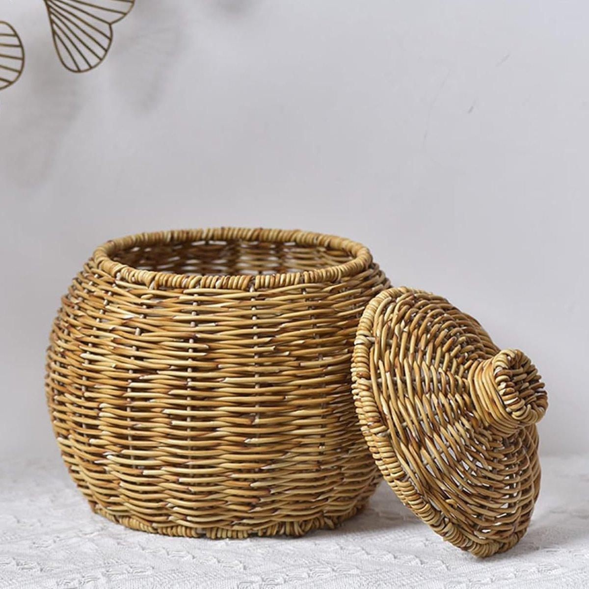 Hand Woven Storage Container with Lid Tabletop Basket Sundries Holder Organizer