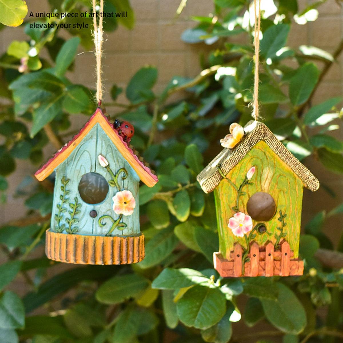 Handmade Birdhouse Resin Cute Patio Garden Hanging Nest Decoration for Outdoors
