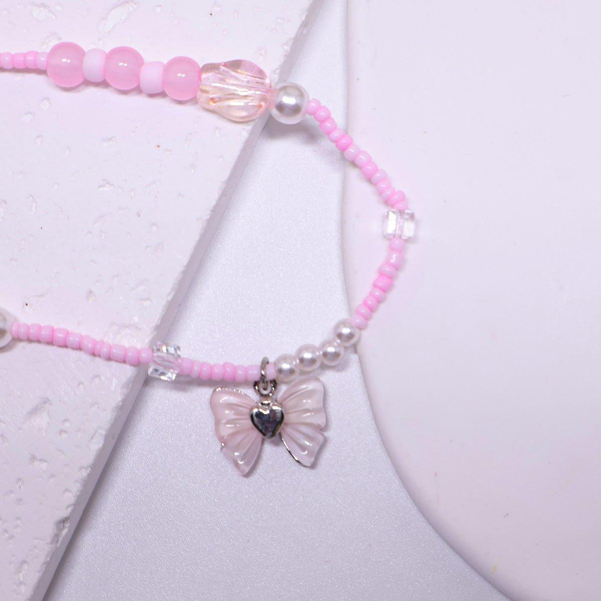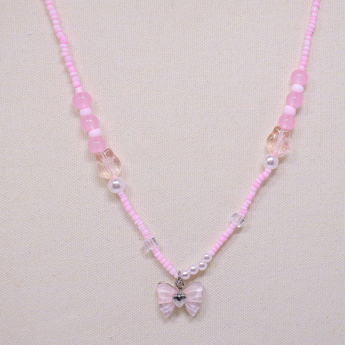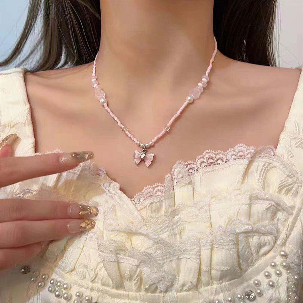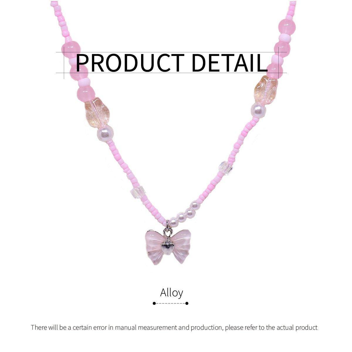 Handmade Pink Butterfly Beaded Necklace Women Girls Cute Boho Fashion