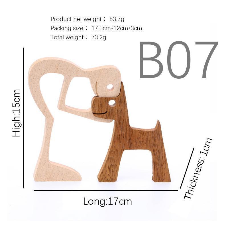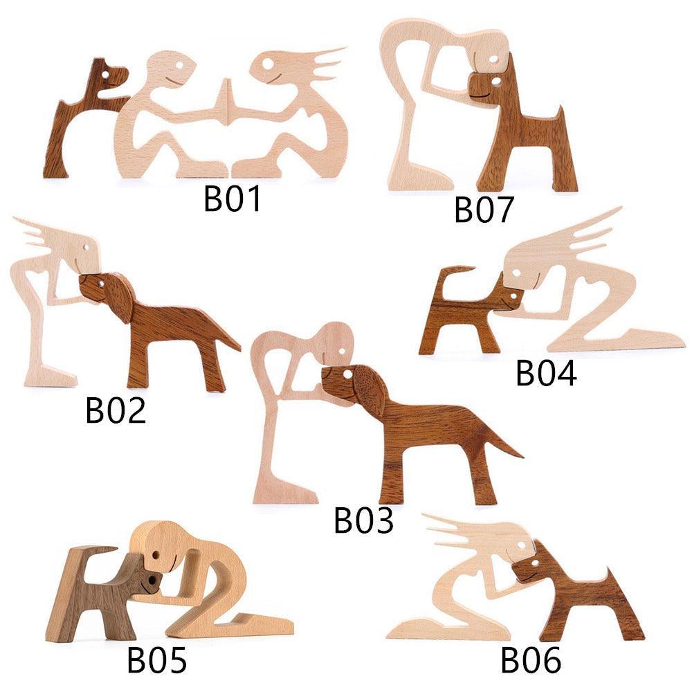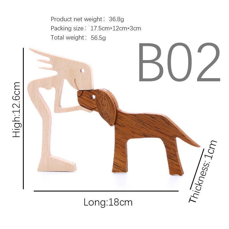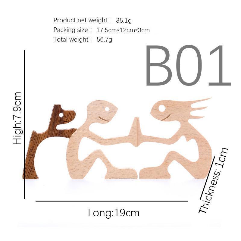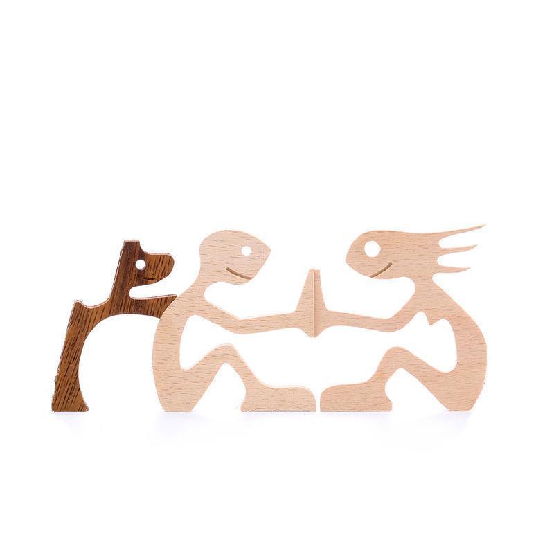 Handmade Wooden Statue Sitting Family and Dog Craft Home Decor