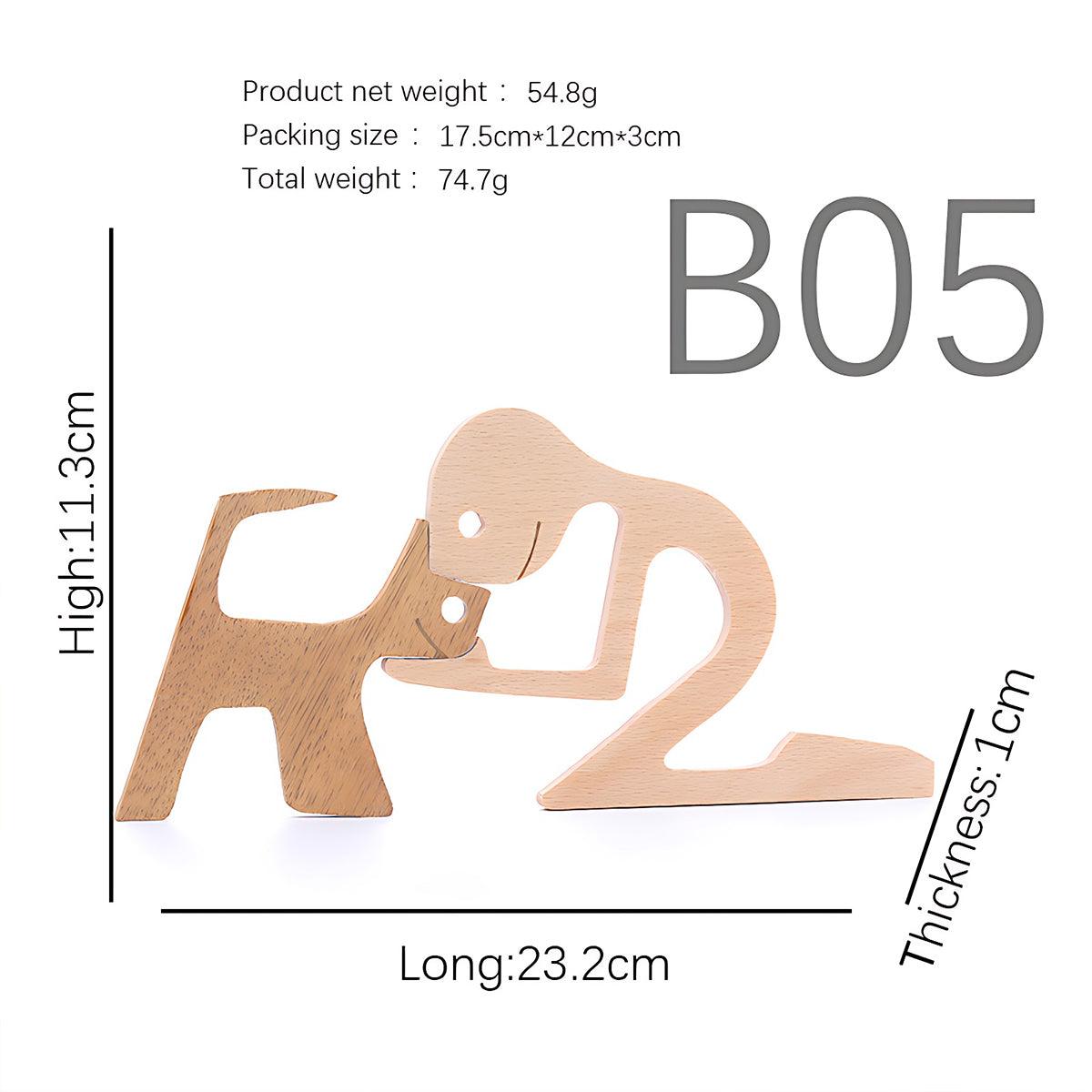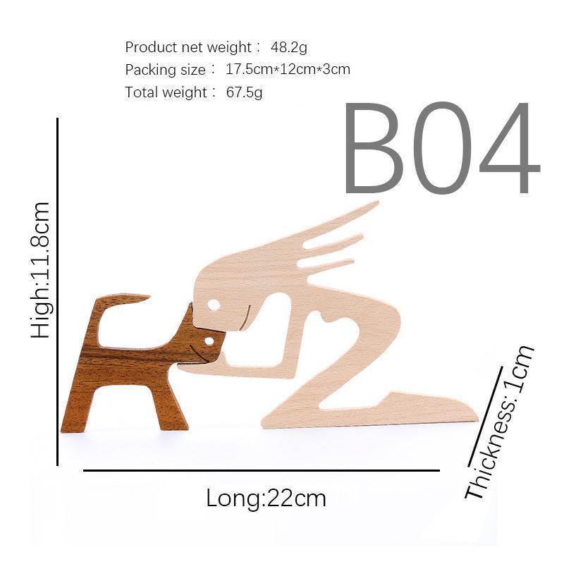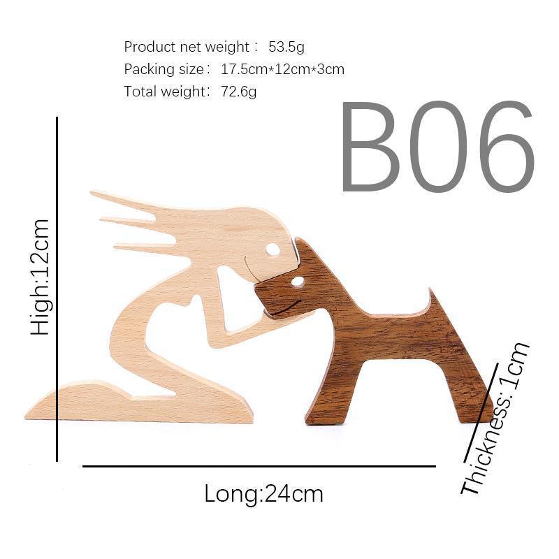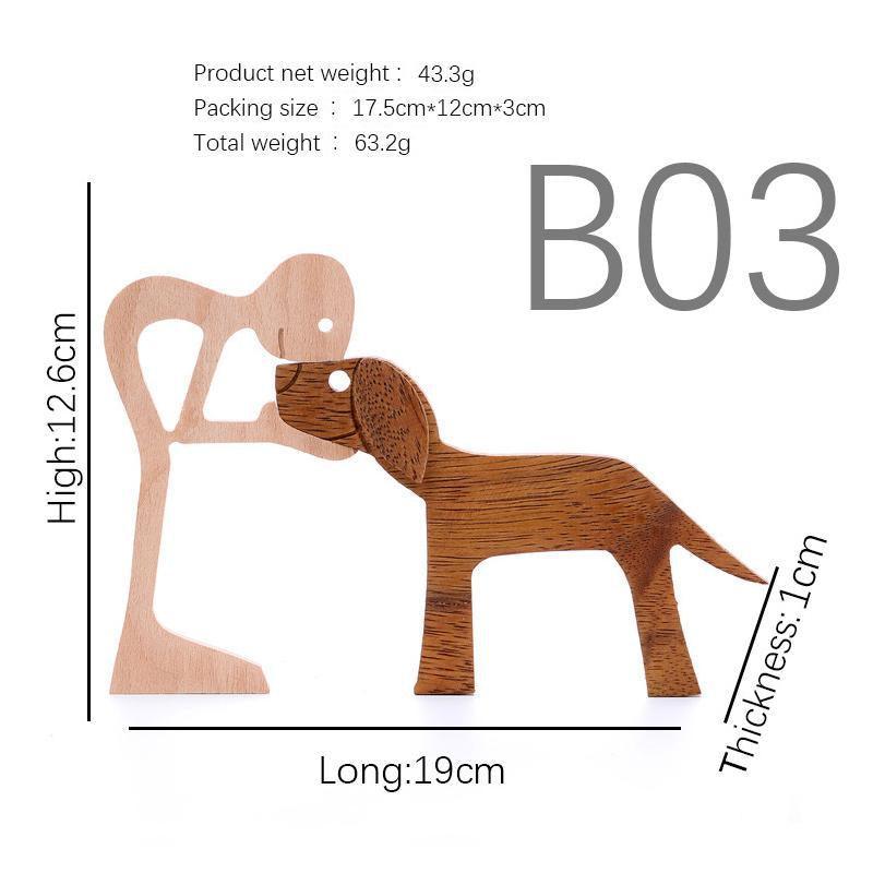 Handmade Wooden Statue Sitting Family and Dog Craft Home Decor