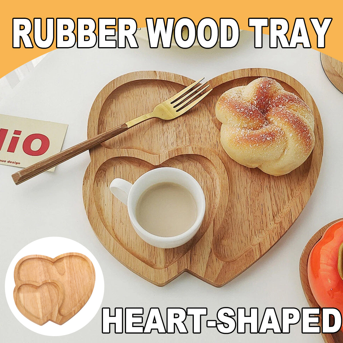 Heart Shape Wood Coffee Tray Food Cup Tray Decorative Wood Dessert Candy Tray