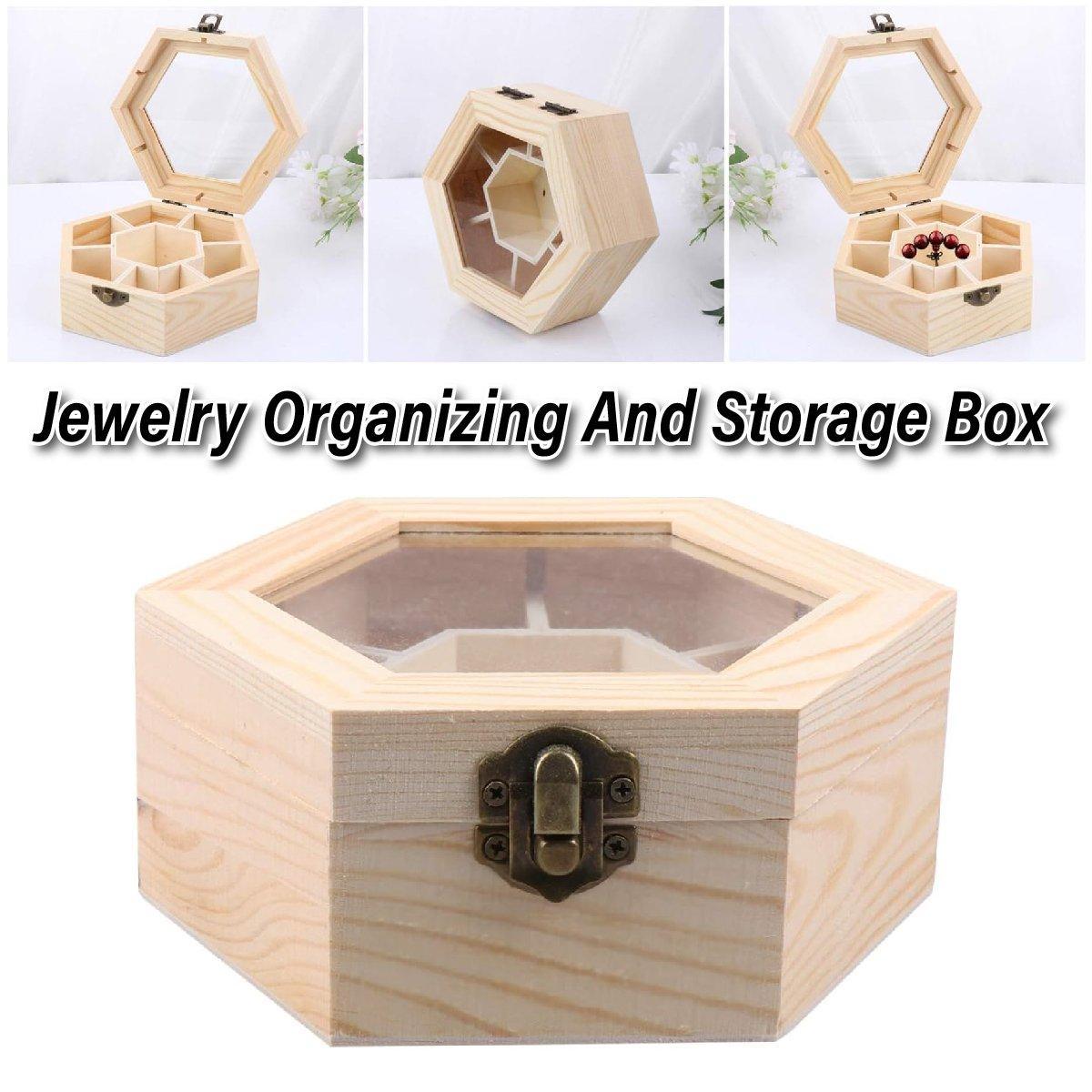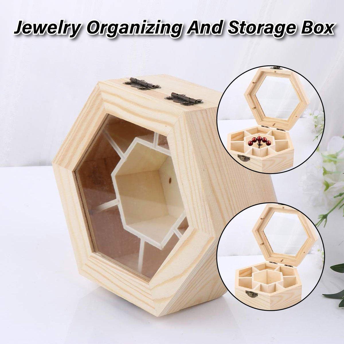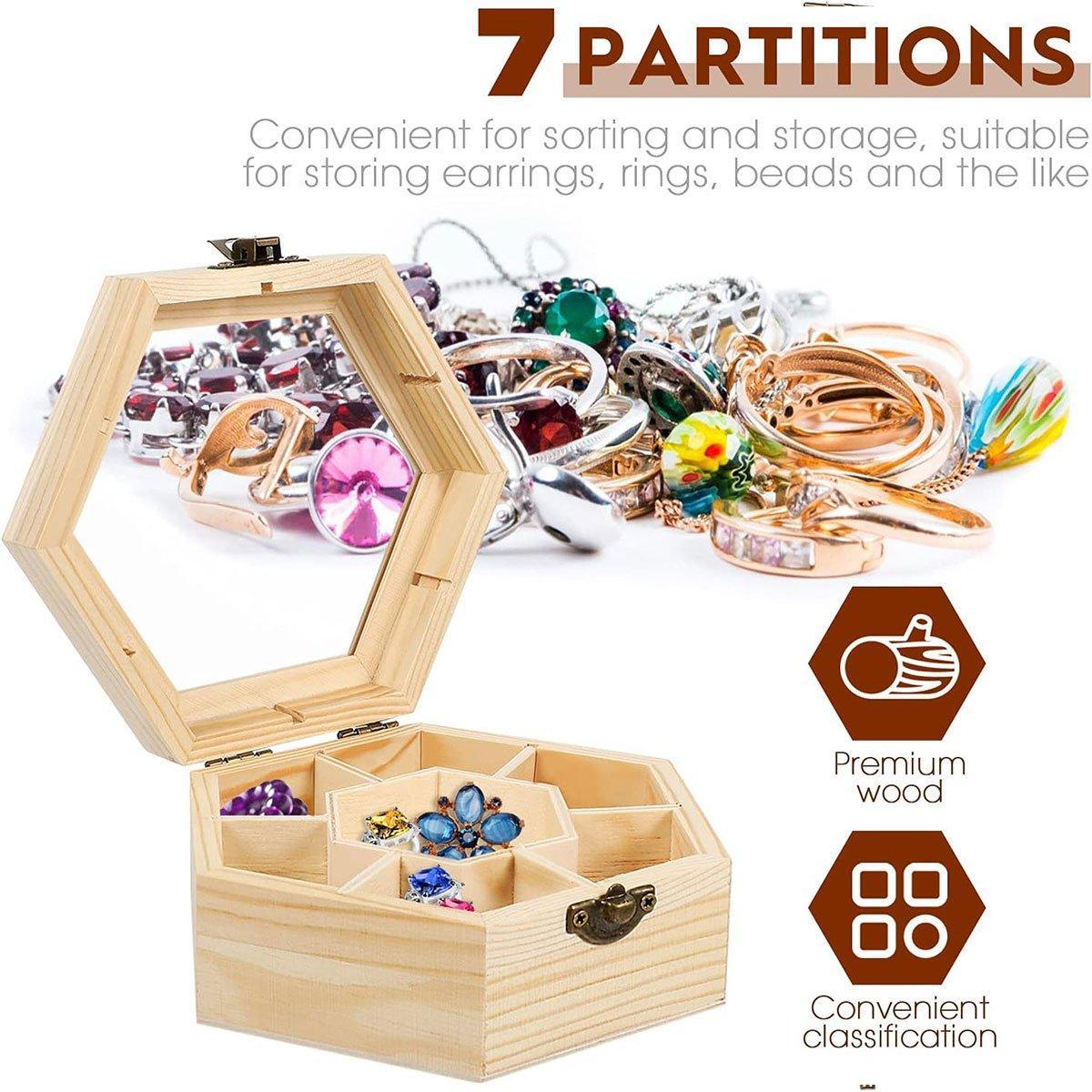 Hexagonal Seven Jewelry Compartment Wooden Organizer Desktop Finishing Box