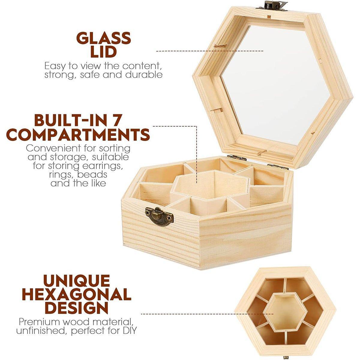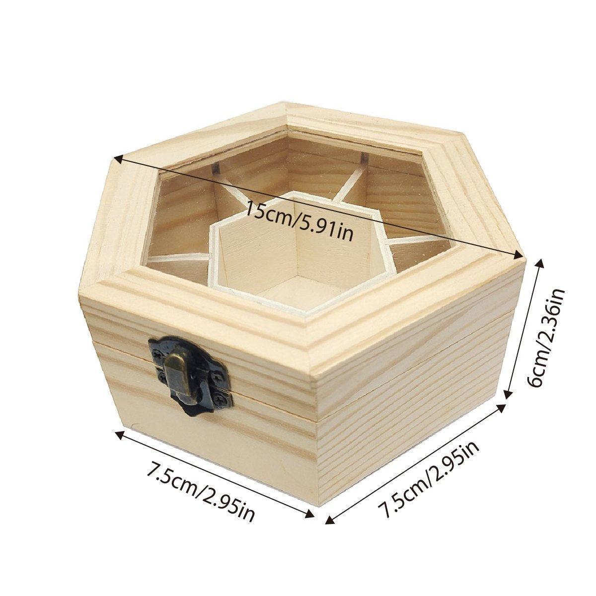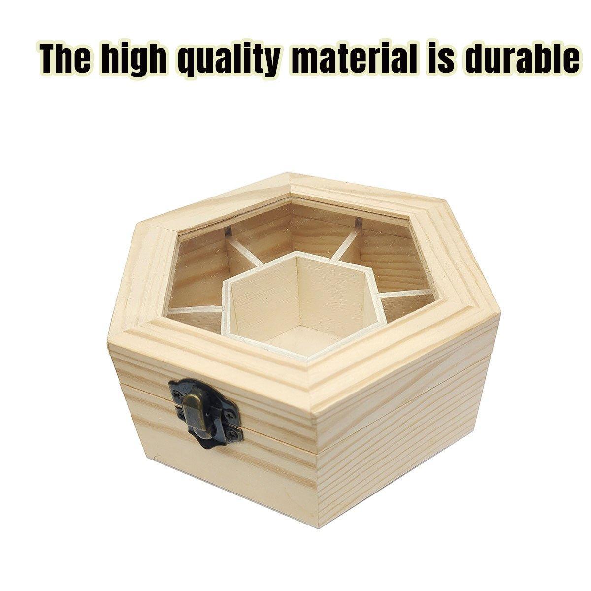 Hexagonal Seven Jewelry Compartment Wooden Organizer Desktop Finishing Box