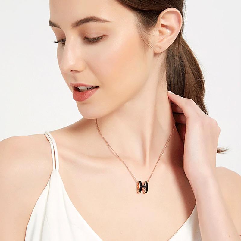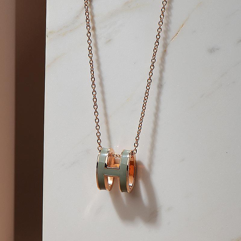 High version clavicle chain H enamel letter POP necklace women's oval rose gold pendant jewelry factory wholesale