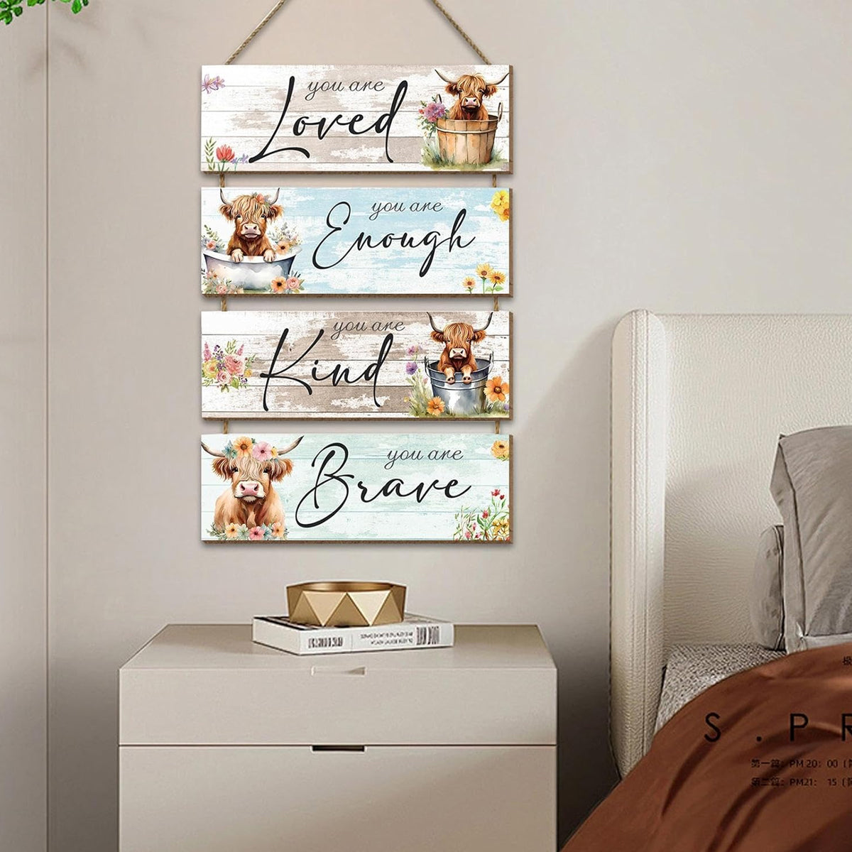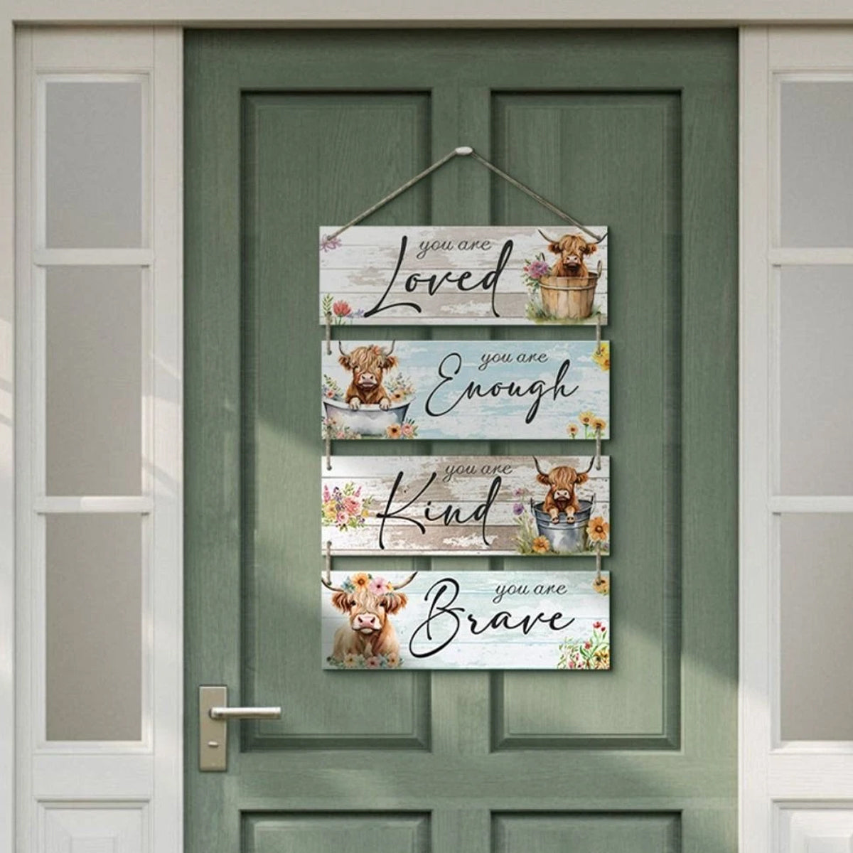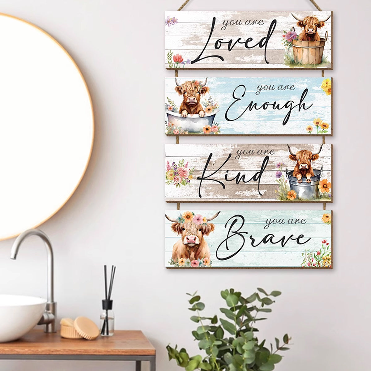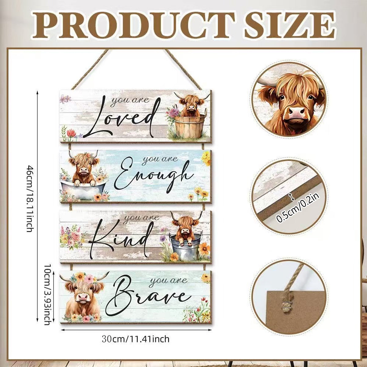 Highland Cow Hanging Plaque Decoration Rustic Style Durable Wood Material