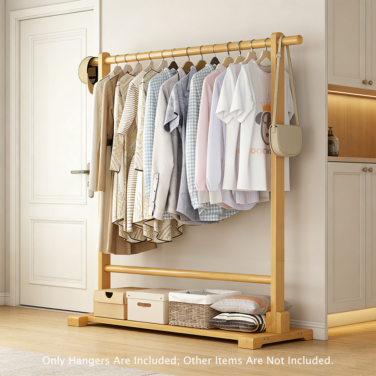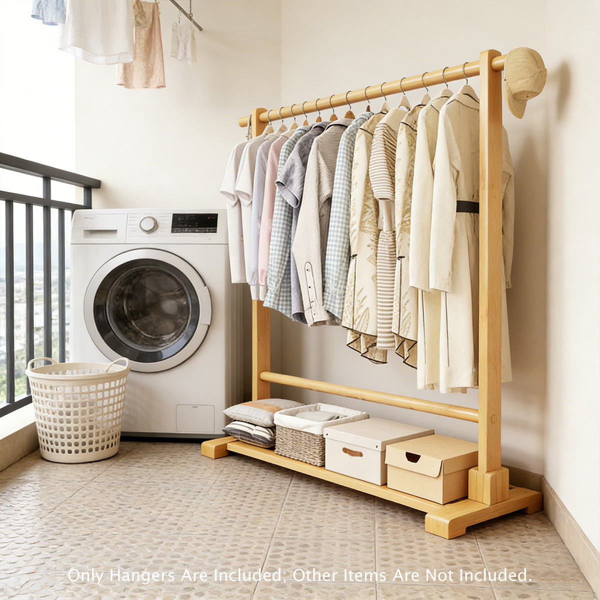 Home Bamboo Floor-Standing Simple Clothes Storage Rack High Load-Bearing Stable