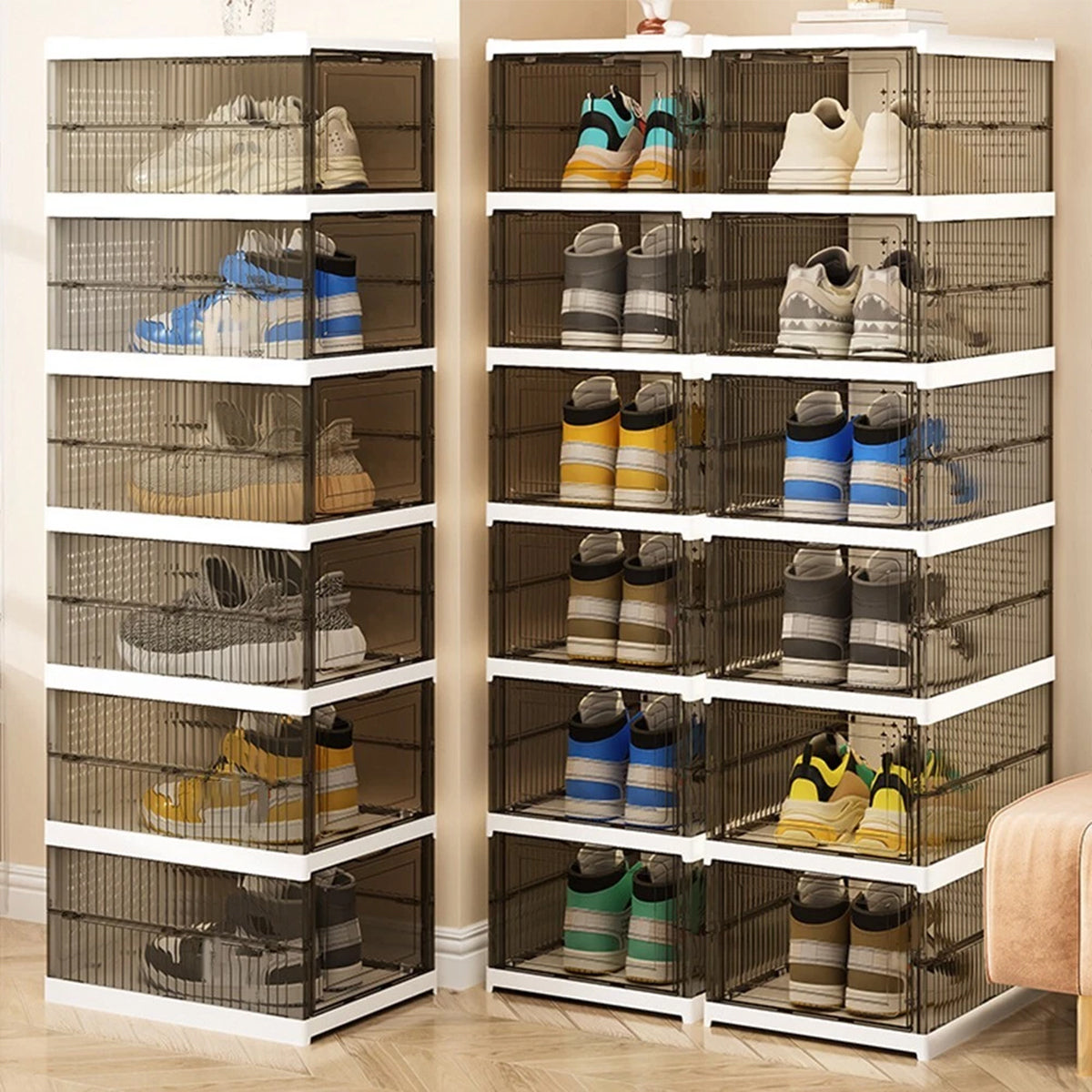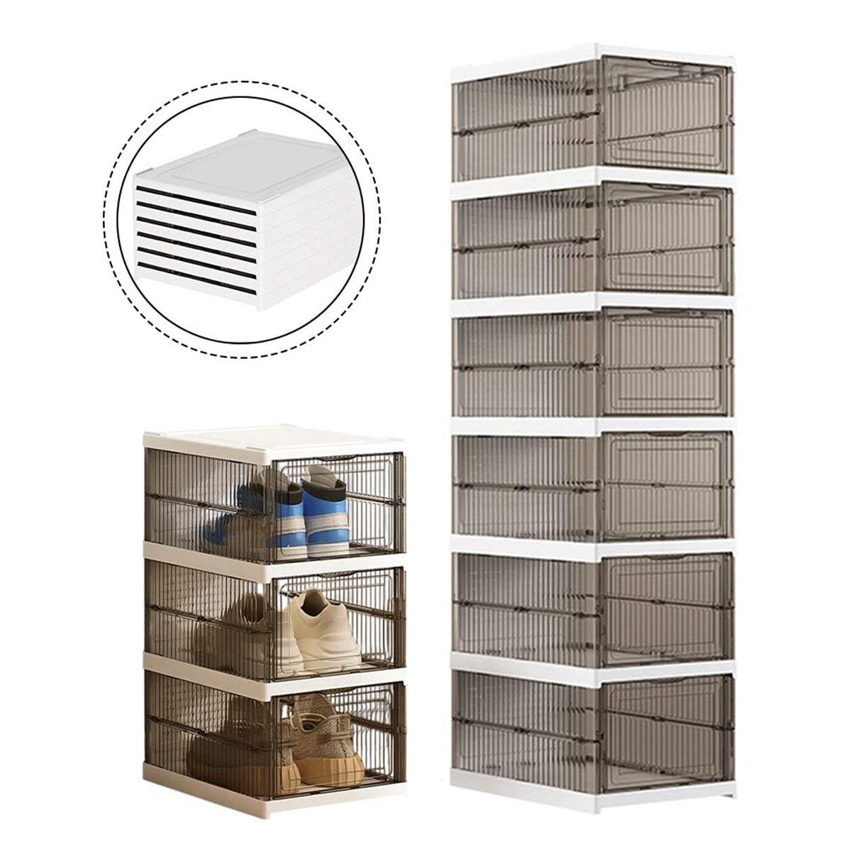 Stackable Design: You can stack multiple shoe boxes on top of each other, maximizing vertical storage space. Whether you have a few pairs or a large shoe collection, they can all be neatly stacked.