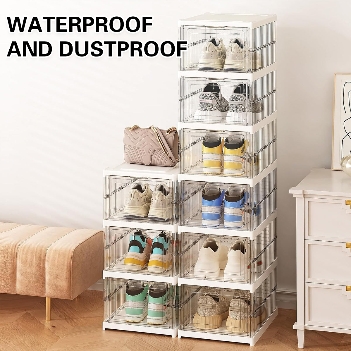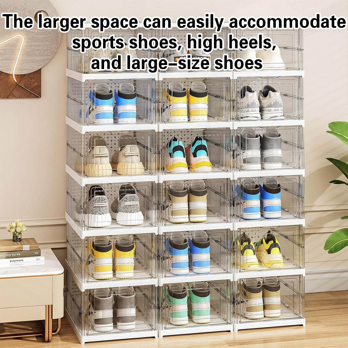 Sturdy Material: Made of PS + PP materials, the shoe box is durable and can withstand daily use.