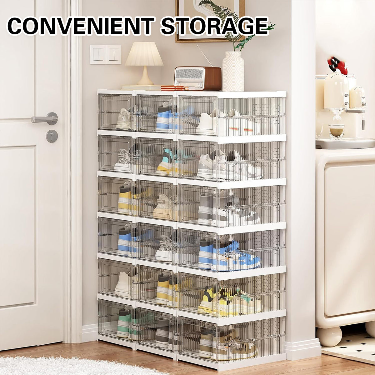 Convenient Access: The design allows for easy opening without any sticking. The transparent front panel makes it effortless to identify and retrieve the shoes you need.