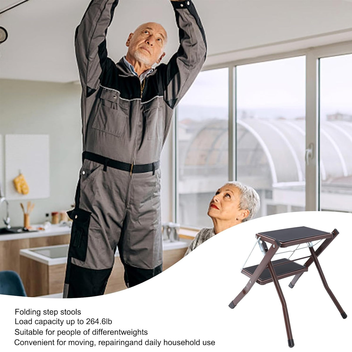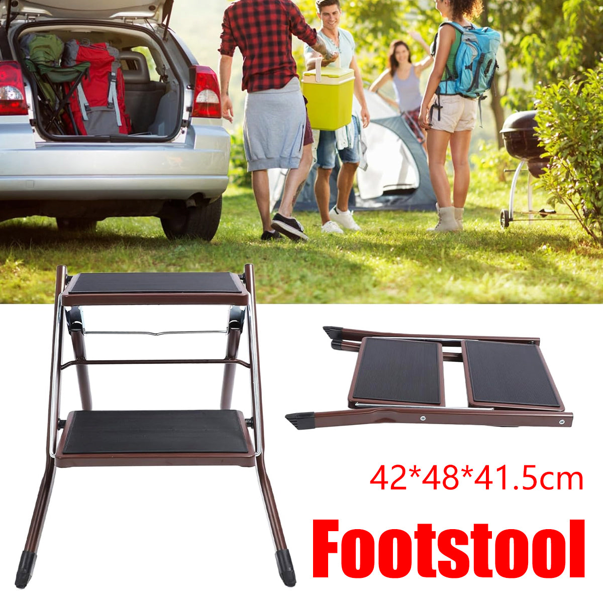 Home Multi Function Foldable Metal Step Stool Footstool Space Saving Durable