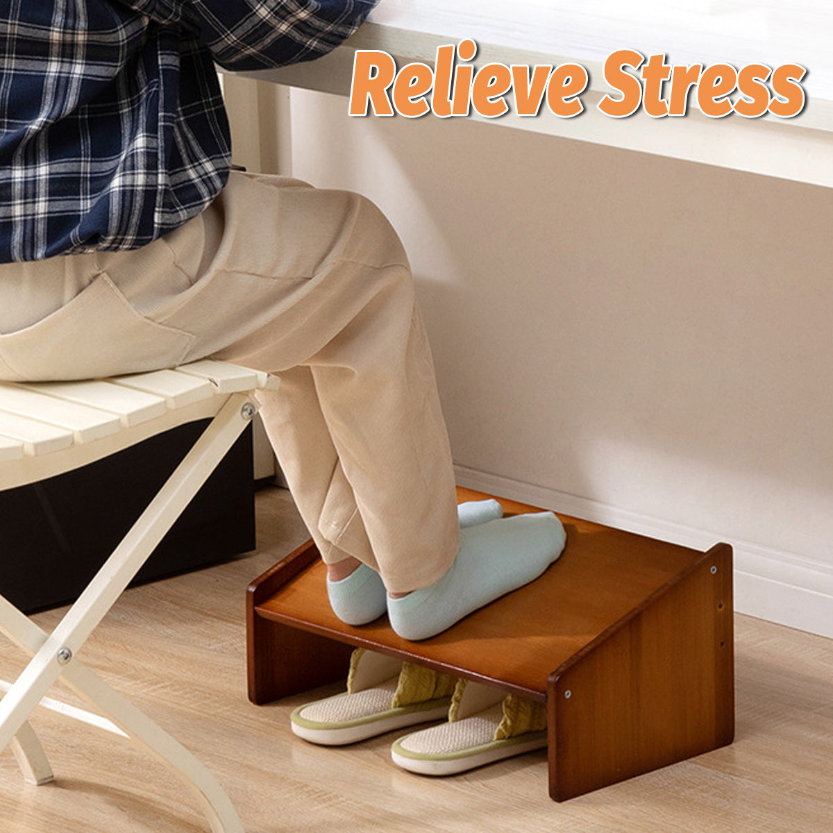 Home Office Bamboo Under Desk Footrest Adjustable Height Wooden Foot Rest Stool