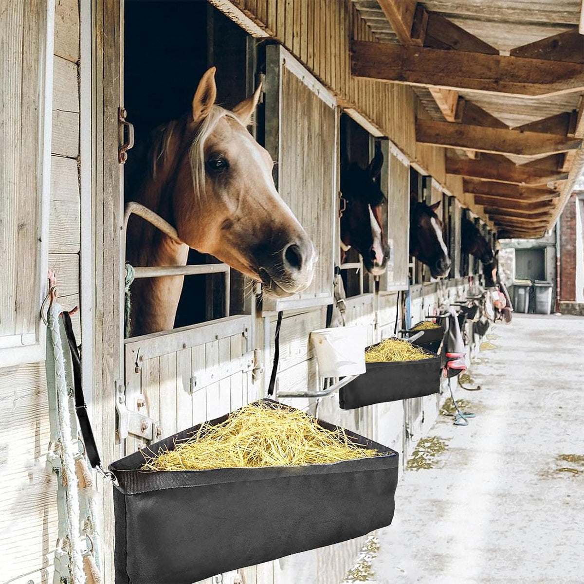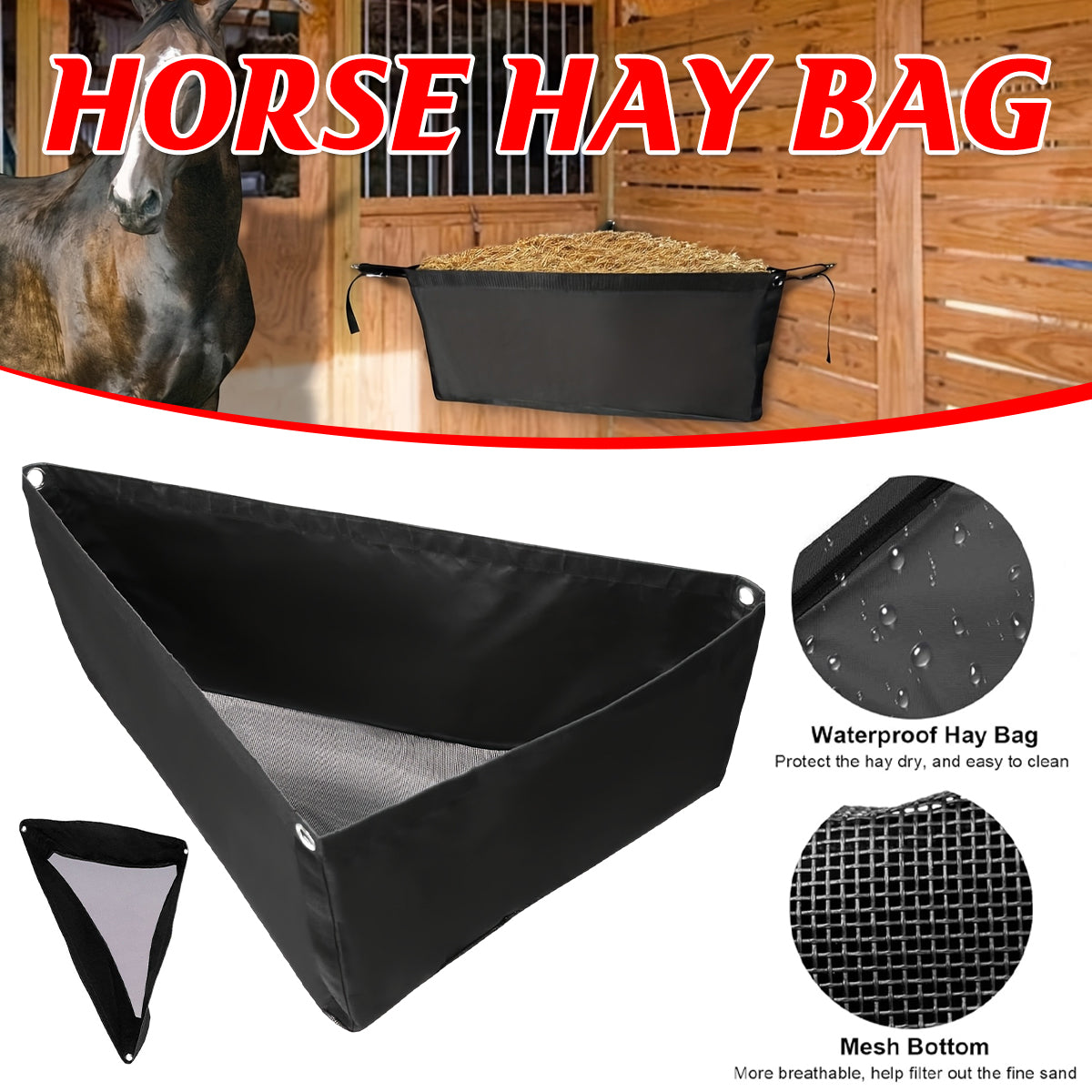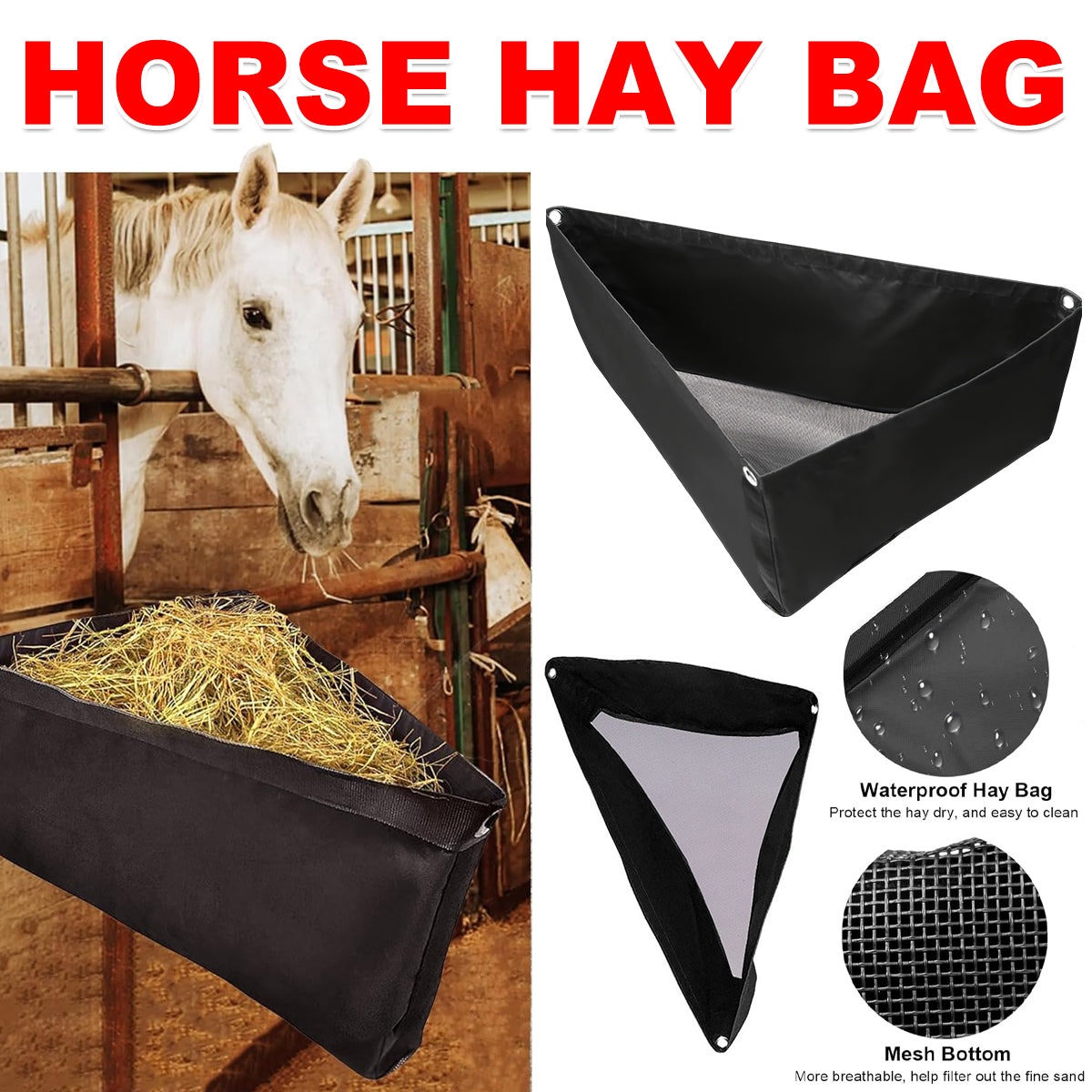 Horse Hay Feeder Bag Triangular Dry Straw Feeding Bag For Stable Farm Livestock