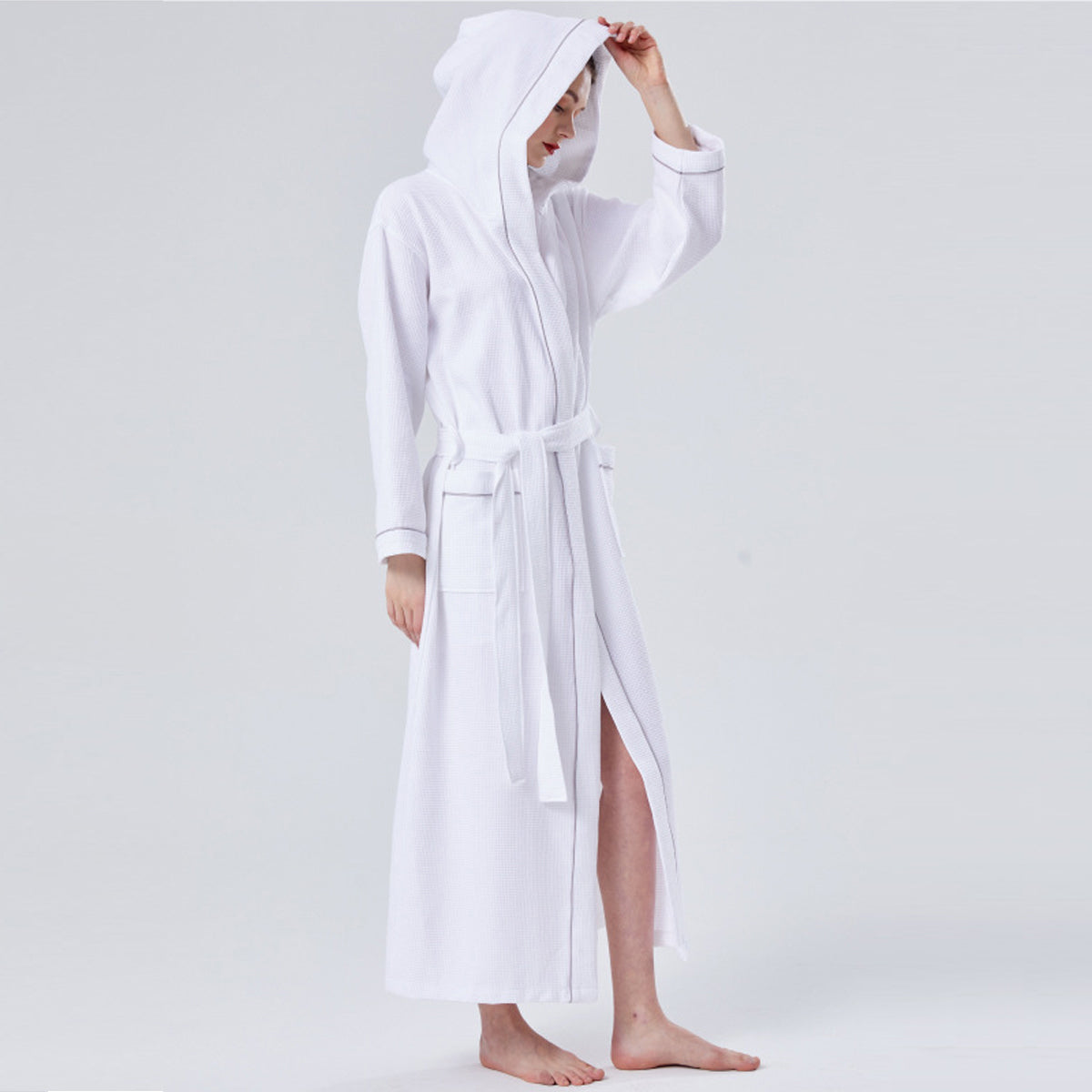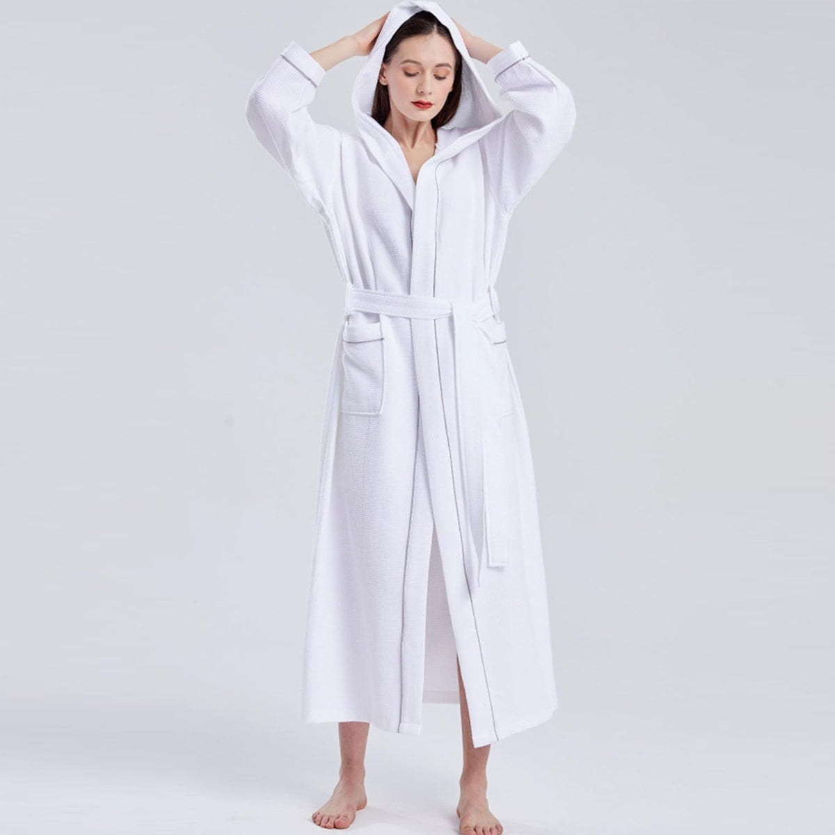 Hotel Bathrobe Waffle Hooded Robe Soft Absorbent for Men and Women Unisex Towels