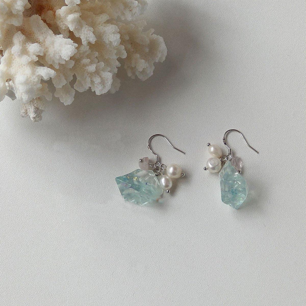 Ice Blue Pearl Earrings for Girls and Women Elegant Fashion Jewelry Gift Set
