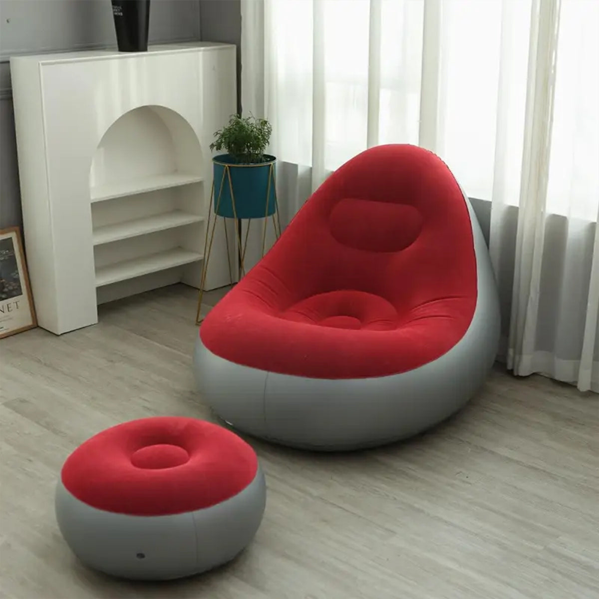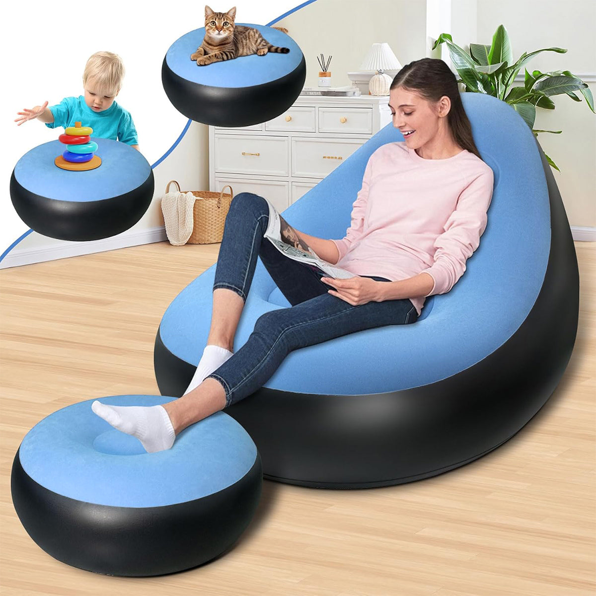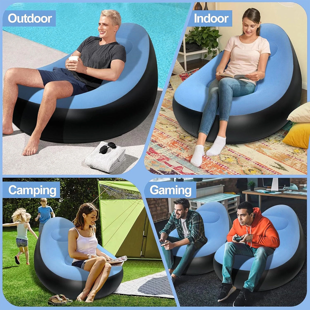 Inflatable Folding Lazy Sofa Chair PVC Air Recliner With Pump Backrest Seat Bed
