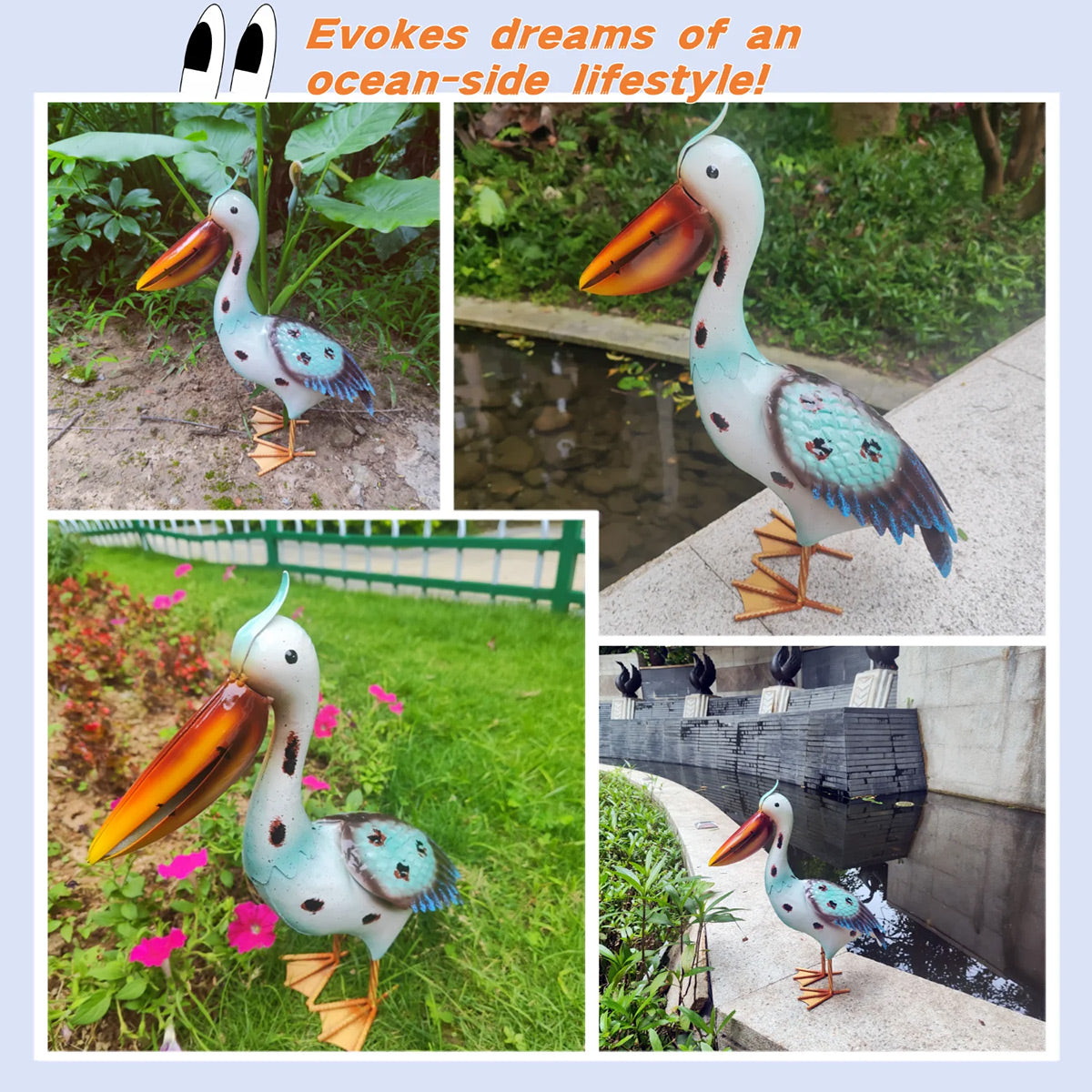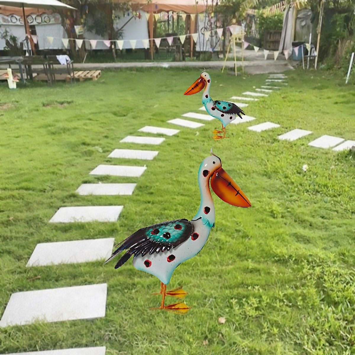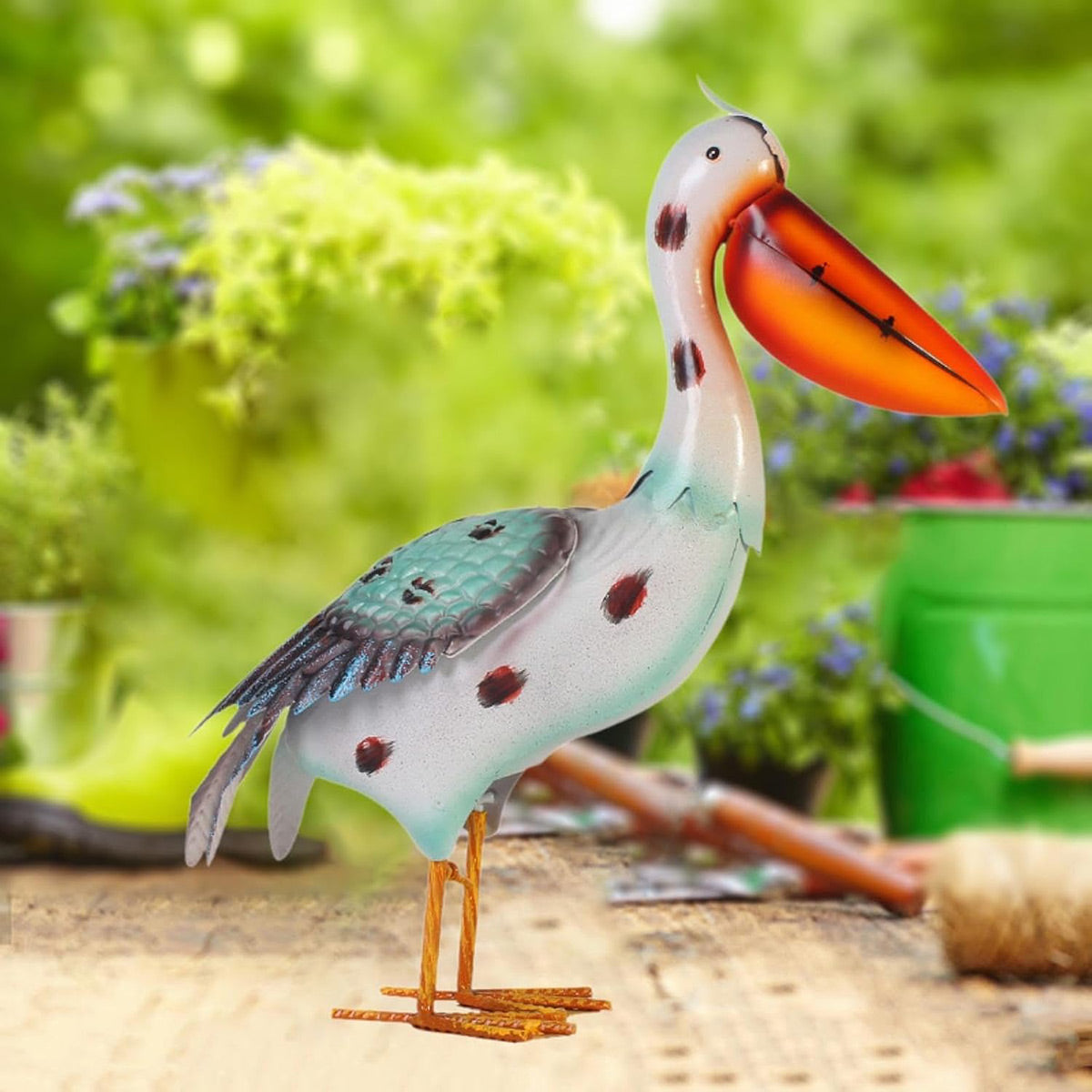 Iron Pelican Statue Garden Decoration for Outdoor Yard Patio Lawn Porch Ornament