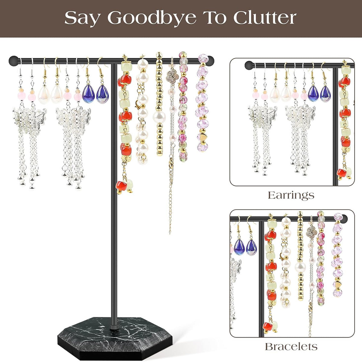 Jewelry Display Stand T-shape Earring Necklace Rack Tabletop Holder
