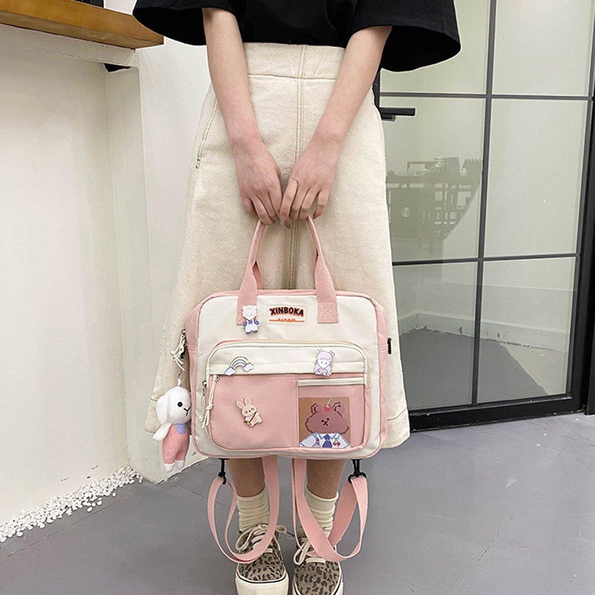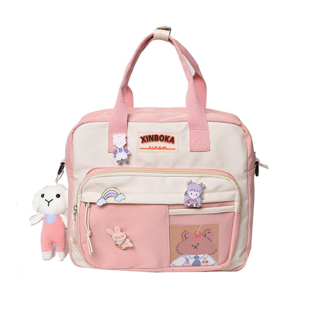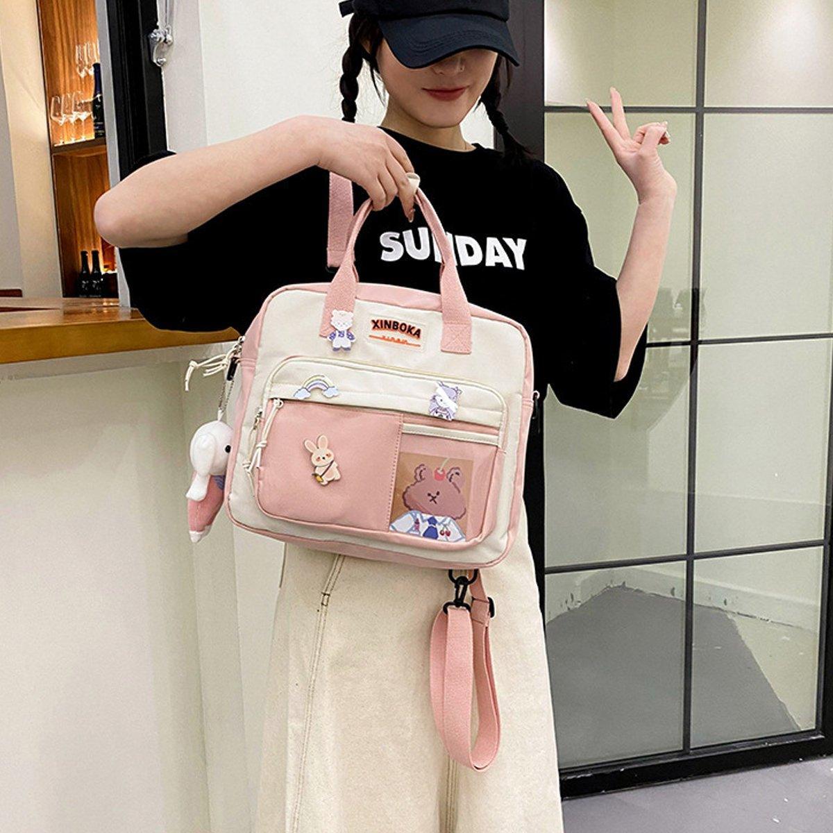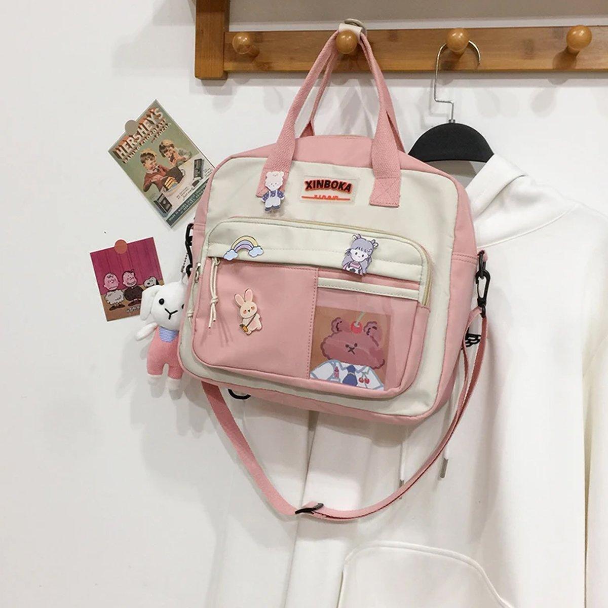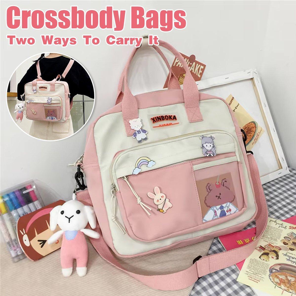 Kawaii Crossbody School Bag for Girls Large Capacity Kawaii Bag With Kawaii Pin