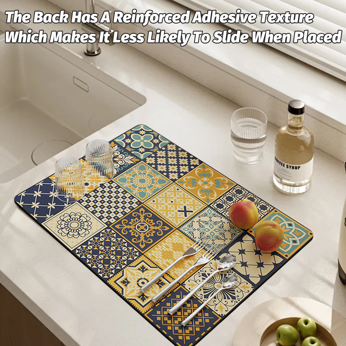 Kitchen Drain Mat Absorbent Polyester Non-Slip Back Tile Pattern