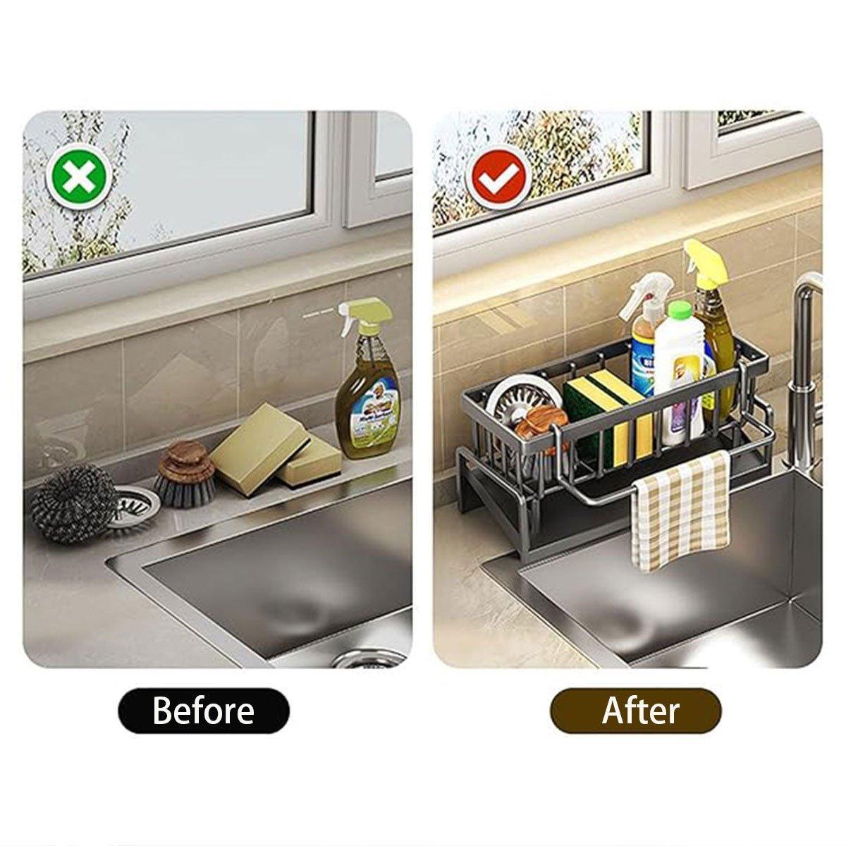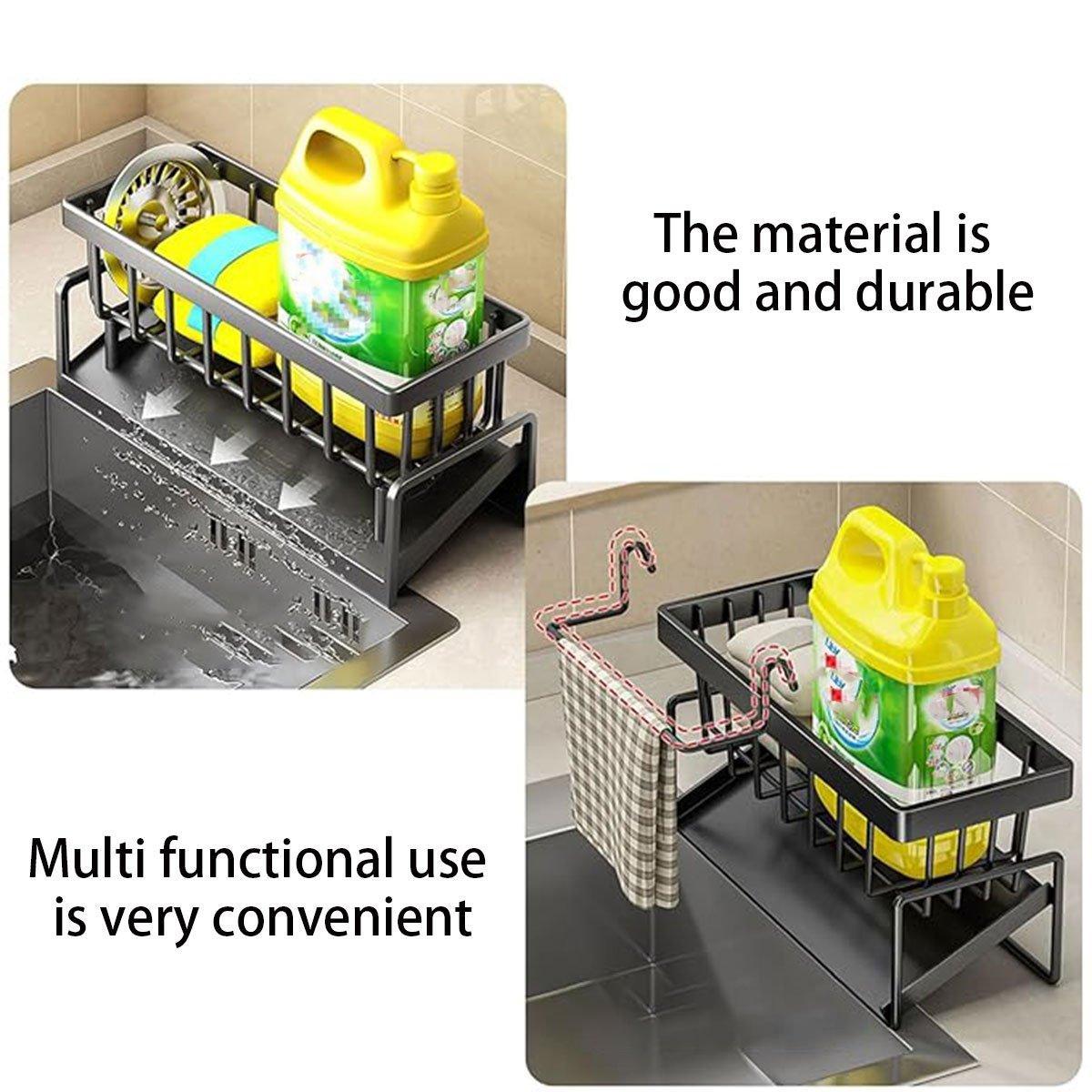 Kitchen Sink Caddy Storage Organizer Steel Sponge Soap Brush Holder Faucet Rack
