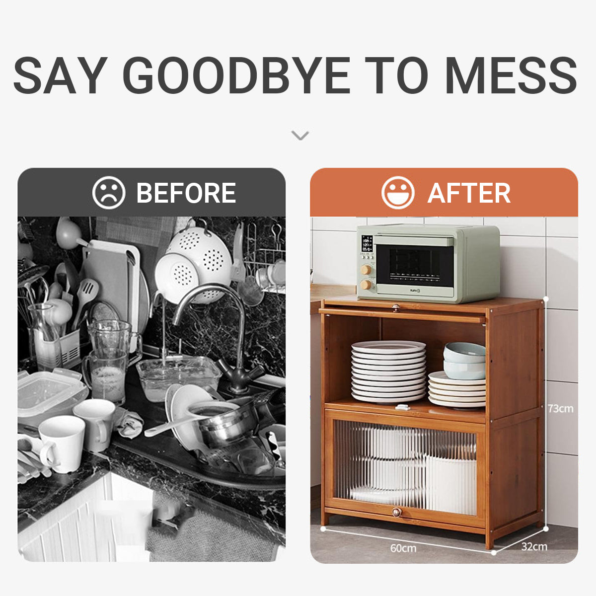 Kitchen Storage Cabinet with Doors Bamboo Durable for Pantry Spices Food Use