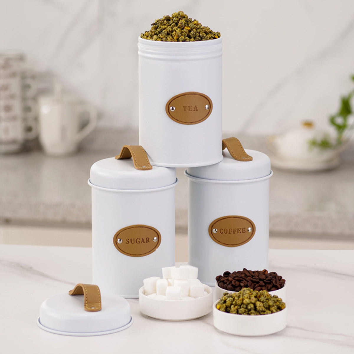 Kitchen Storage Canisters Set Metal Tea Coffee Sugar Jars Containers Retro