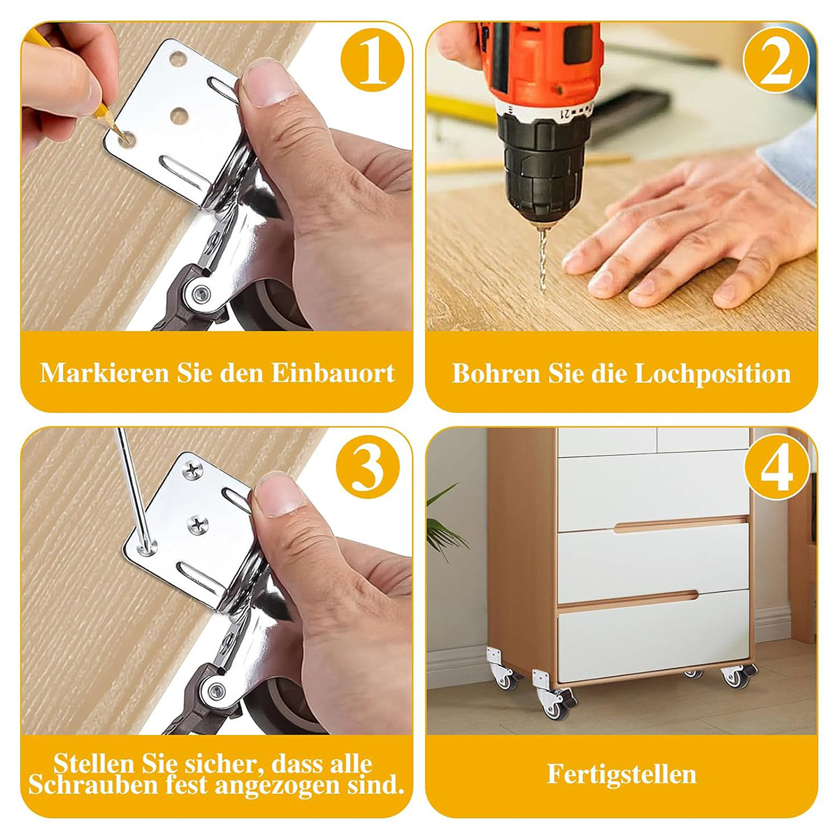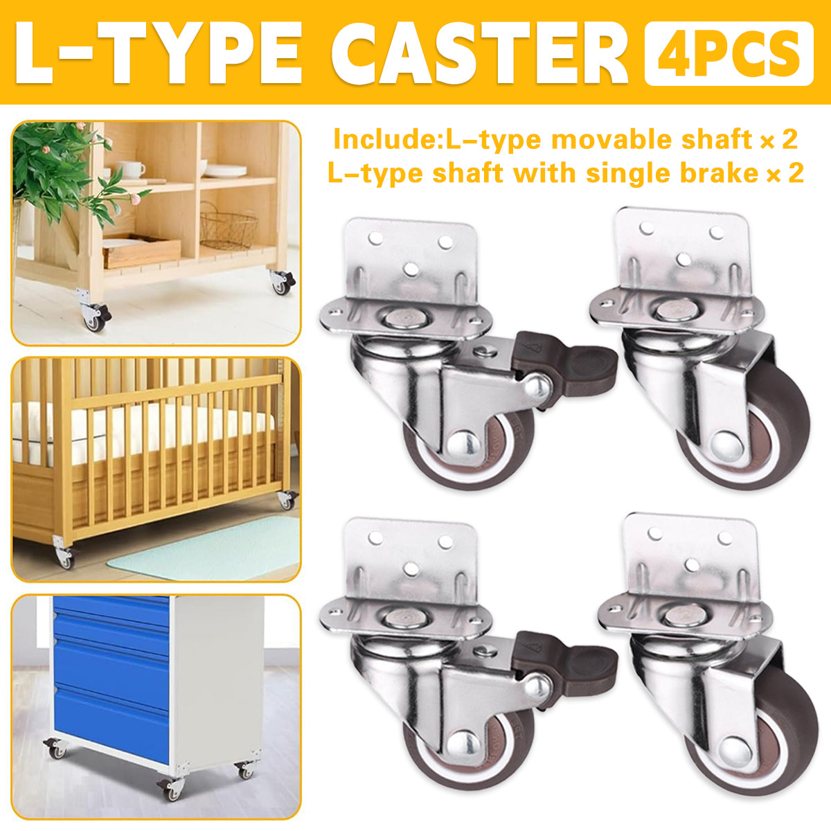 L Type Furniture Casters 4pcs 90-Degree Right Angle Small Wheel Furniture Wheels