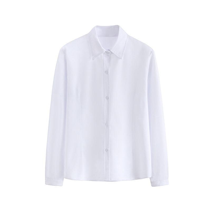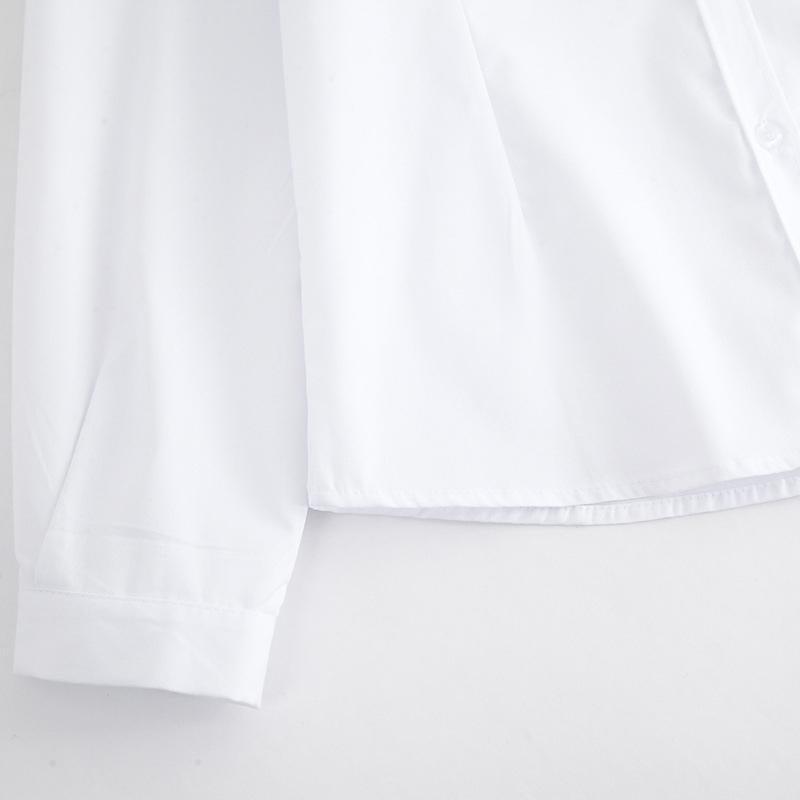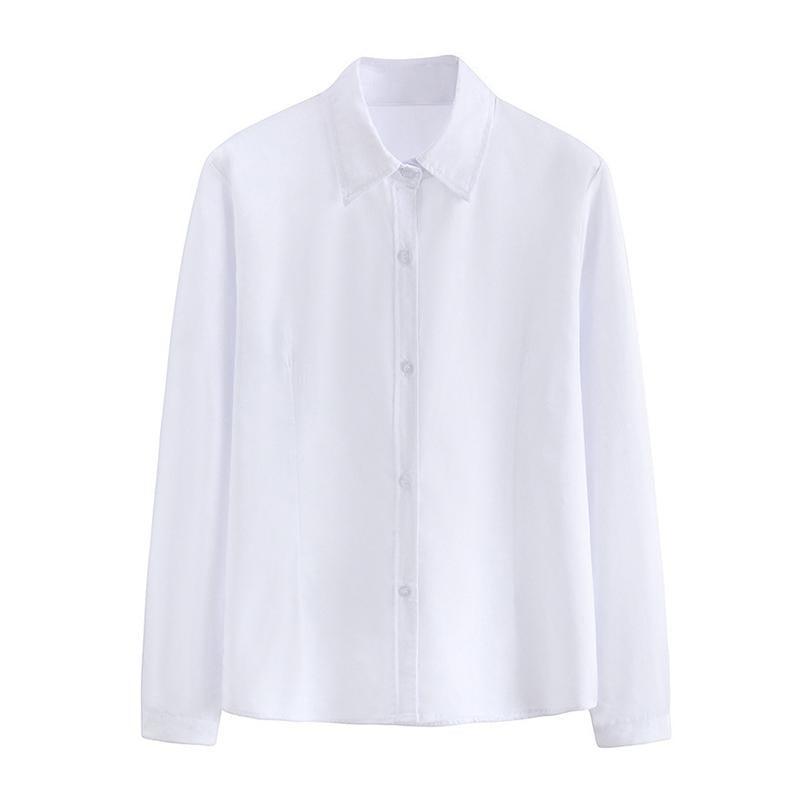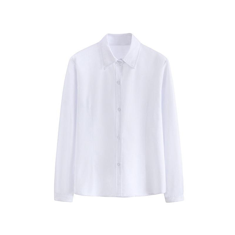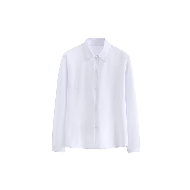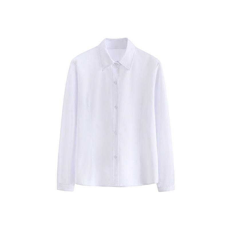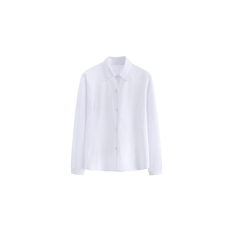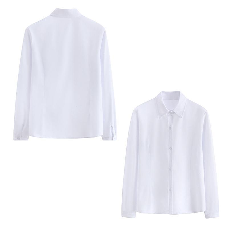 Ladies Womens Plain Long Sleeve Work Shirt Collar Office Formal Blouse Easy Care