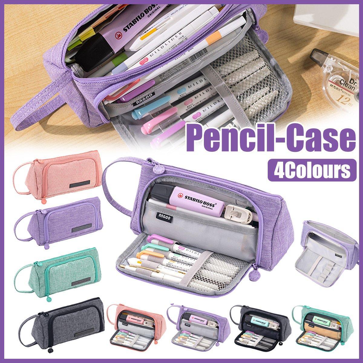 Large Capacity Student Canvas Pencil Case Pencil Bag Multi-functional Cute