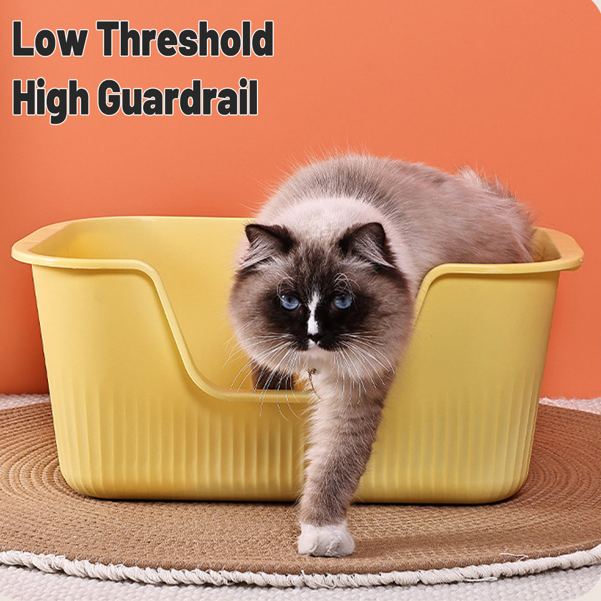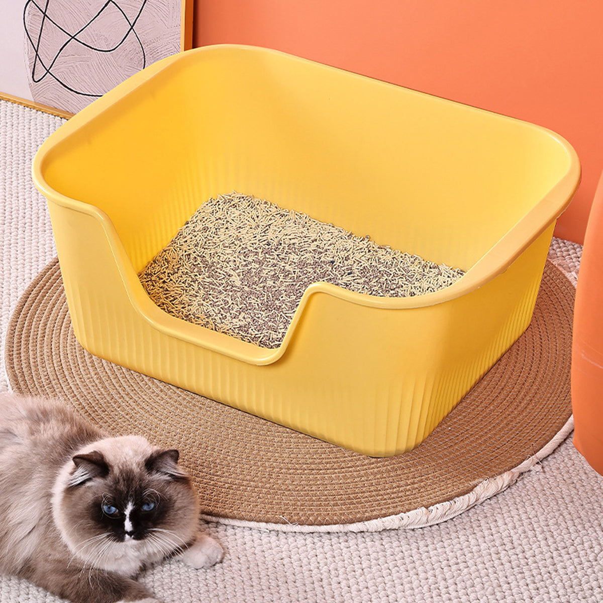 Large Cat Litter Box Open Toilet Semi Enclosed Yellow Tray Splash Proof Pet